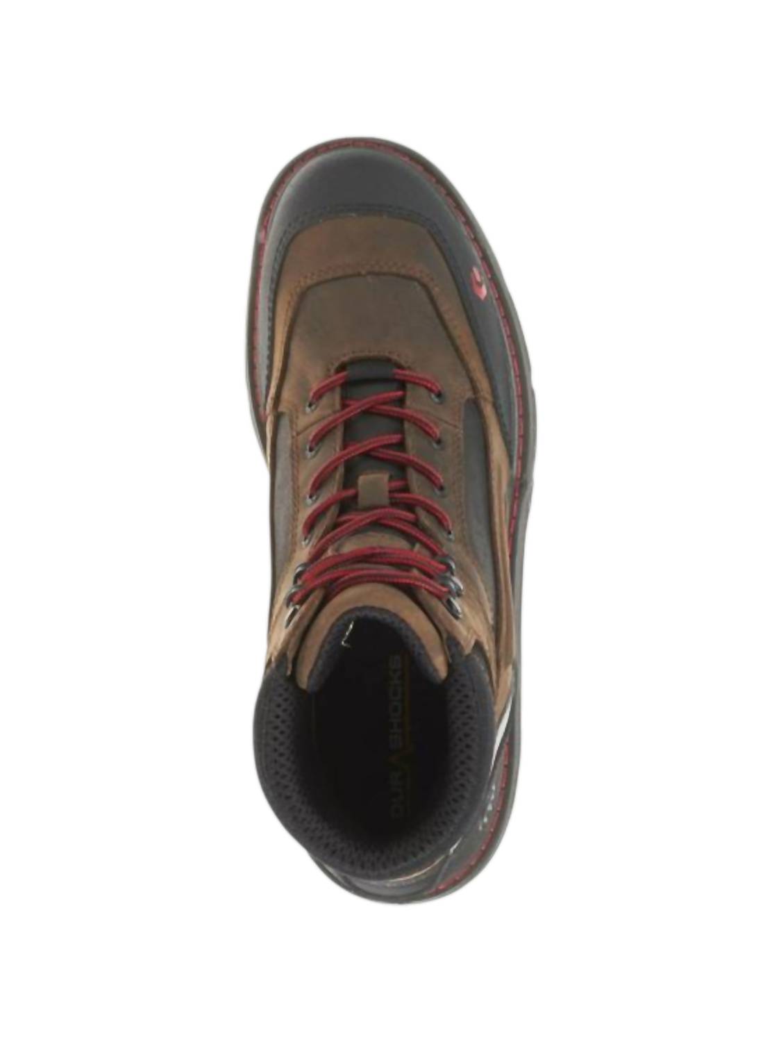 Step up your work gear with the Men's Overman 6" Work Boot by Wolverine, crafted in rugged brown and black leather for durability. Featuring an abrasion-resistant heel and toe foxing, it includes a moisture-managing mesh lining and a slip, oil, and abrasion-resistant rubber lug outsole. The boot's removable Multishox full-cushion footbed and PU midsole provide exceptional comfort, enhanced by the Nylon shank for support. With Wolverine MultiShox® ContourWelt® construction and the CarbonMax safety-toe meeting ASTM standards, this boot promises peak performance on the job. Imported, backed by a 30 Day Comfort Guarantee.