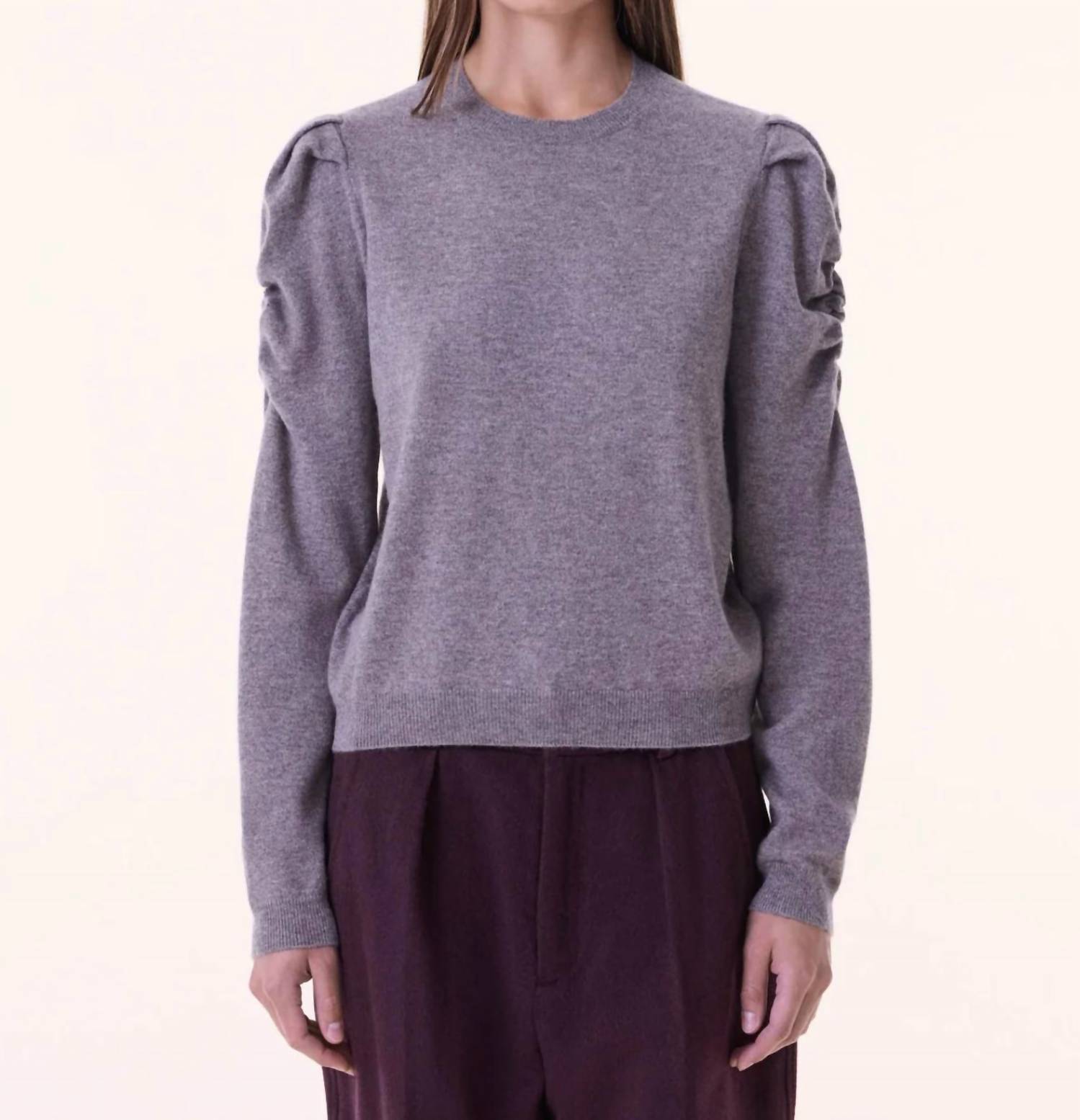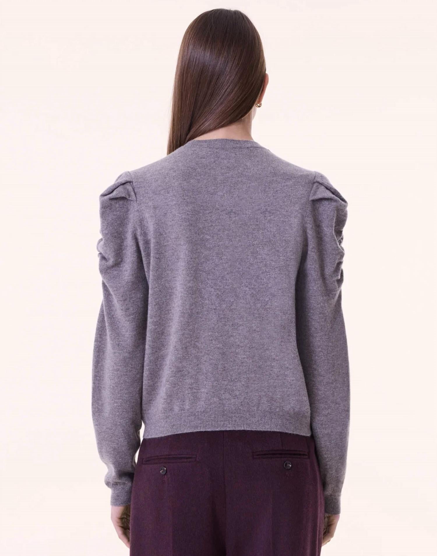 The ultimate go-to sweater, expertly crafted to provide the perfect combination of warmth and style. Its classic design and soft fabric make it a must-have addition to your wardrobe. Discover the luxurious Naoto Cashmere Sweater by Kujten, an elegant choice in a serene Taupe Clair hue. Featuring long sleeves with slightly puffed and ruched shoulder details, this piece is crafted from 100% cashmere for ultimate comfort. This pull-on style sweater measures 55 cm in length, with a width of 48 cm and a sleeve length of 61 cm. Care instructions include machine wash and tumble dry. Model is 5'10" tall and wears size S/M (Kujten size T2).