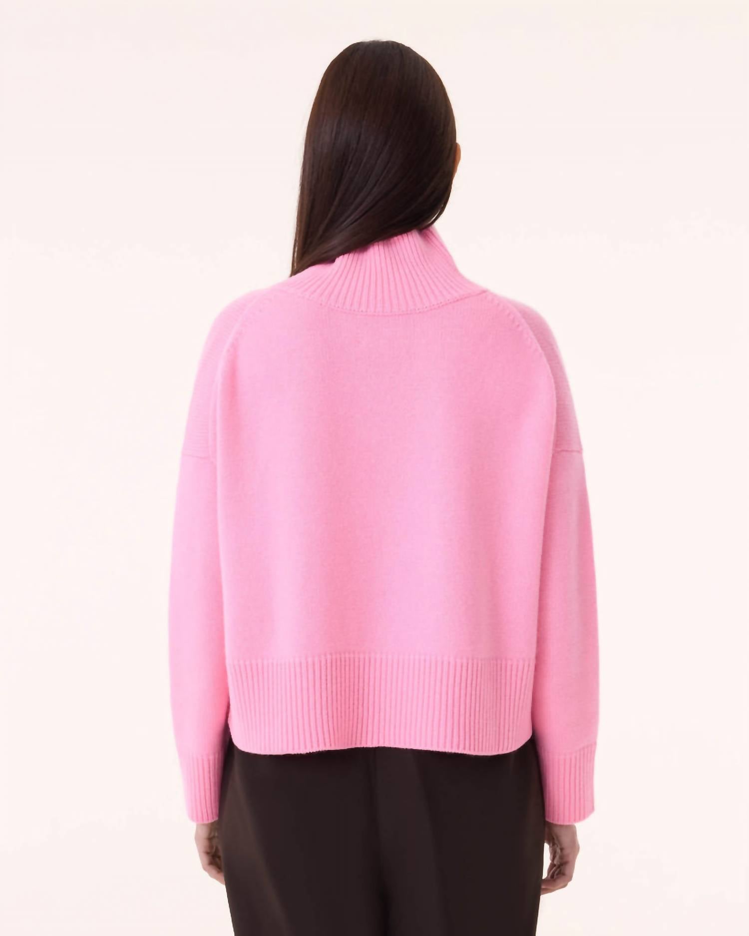 Fit to perfection and effortlessly chic. Introducing the Kujten Ulla Crop Cashmere Sweater, a luxurious choice for transitioning into cooler seasons. This sweater, crafted from 100% cashmere, features long sleeves and a cozy turtleneck for ultimate comfort. In a trendy Rose Bonbon hue, it showcases 8-thread jersey knitting, adding a touch of elegance to any ensemble. Designed for women with a pull-on closure, it is conveniently machine washable and tumble dry friendly.