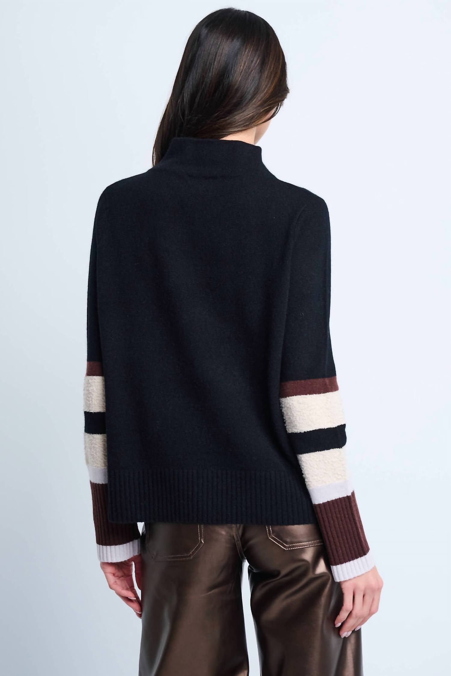Fit to perfection and effortlessly chic. Introducing the Cuff Luck Cashmere Sweater by LISA TODD, a stylish choice crafted in soft Onyx-hued cashmere for ultimate comfort. This long sleeve sweater features a chic mockneck and pull-on closure, ensuring both cozy elegance and minimalist appeal. With its stripe pattern and cuffed sleeves, it's an essential for fall and perfect for Thanksgiving dinner parties. Made for women, this versatile piece should be hand washed and line dried for lasting quality.