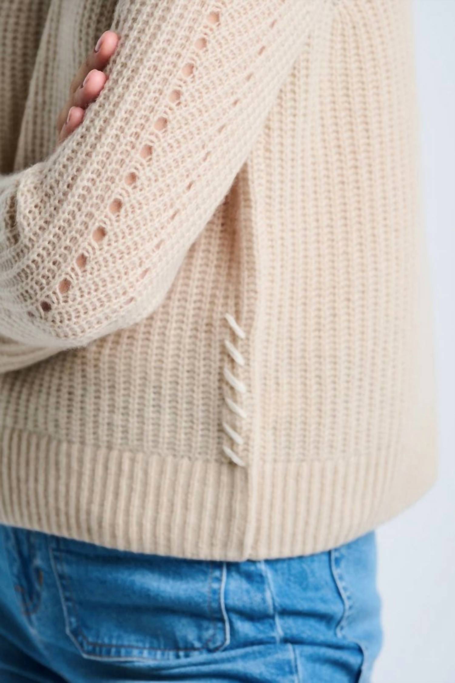 Stay warm and stylish in this versatile and effortlessly cool knitwear staple. Wear it alone or layered, it's the perfect sweater for the season and you'll wish you had it in every color. Elevate your wardrobe with the Luxe Softie Crewneck Sweater by LISA TODD, an exquisite choice for fall in a calming latte hue. This women's sweater features long sleeves and a textured pattern, crafted entirely from 100% Cashmere. Designed with a convenient pull-on closure for minimalist elegance. For care, simply machine wash this sweater to ensure easy maintenance for vacation or holiday outings.