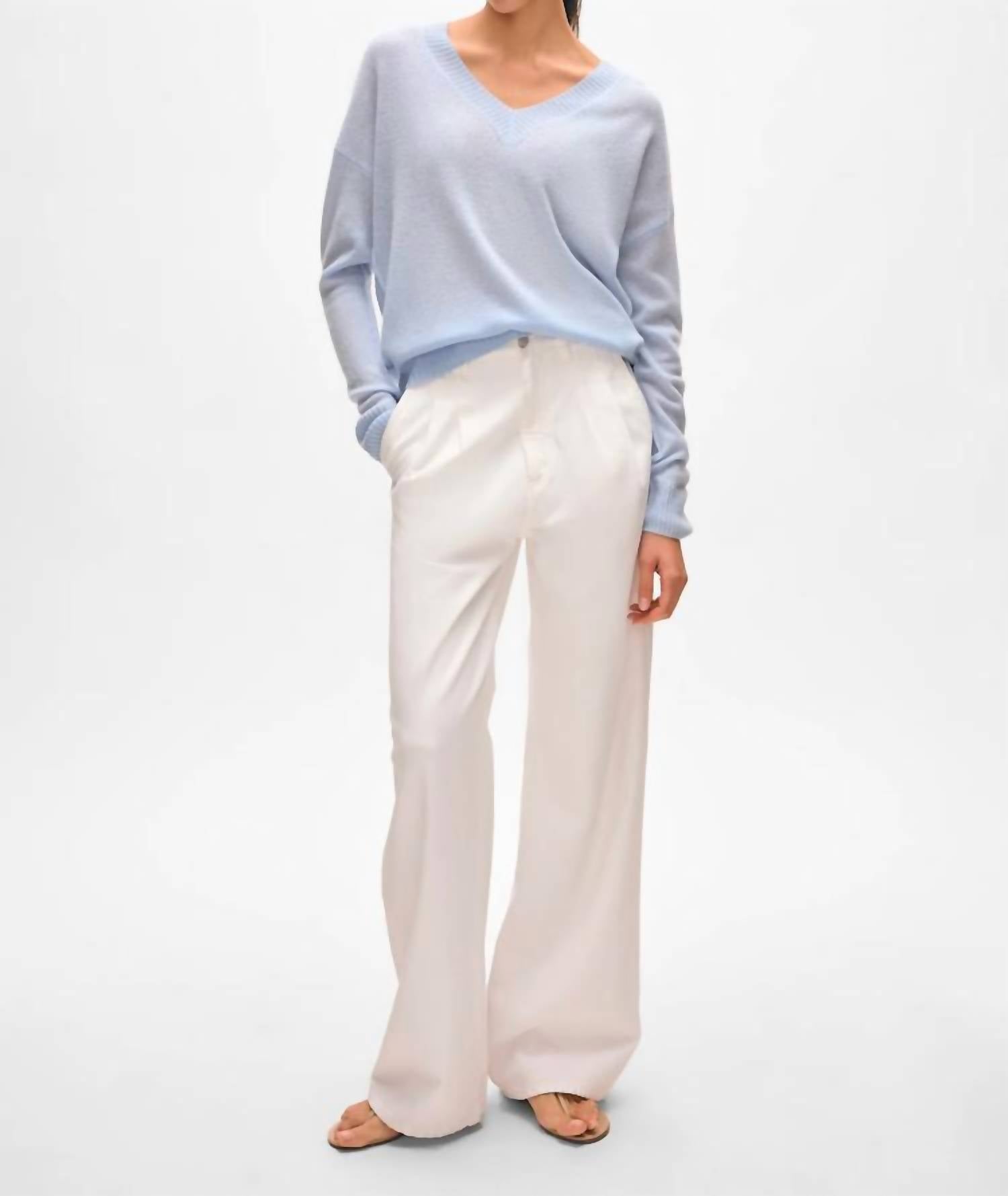 Wear this v-neck sweater with your favorite denim for the perfect fall look. Discover the Cashmere Featherweight V Neck Sweater by White + Warren, crafted in an elegant Pale Mist hue. Featuring long sleeves, this ladies' V-neck is expertly knit from 100% cashmere, offering a breathable and relaxed fit with a longer length. Designed for transitional styling, this solid-patterned pull-on sweater fits seamlessly into a minimalist fall wardrobe. Care for your garment by opting for dry clean only.