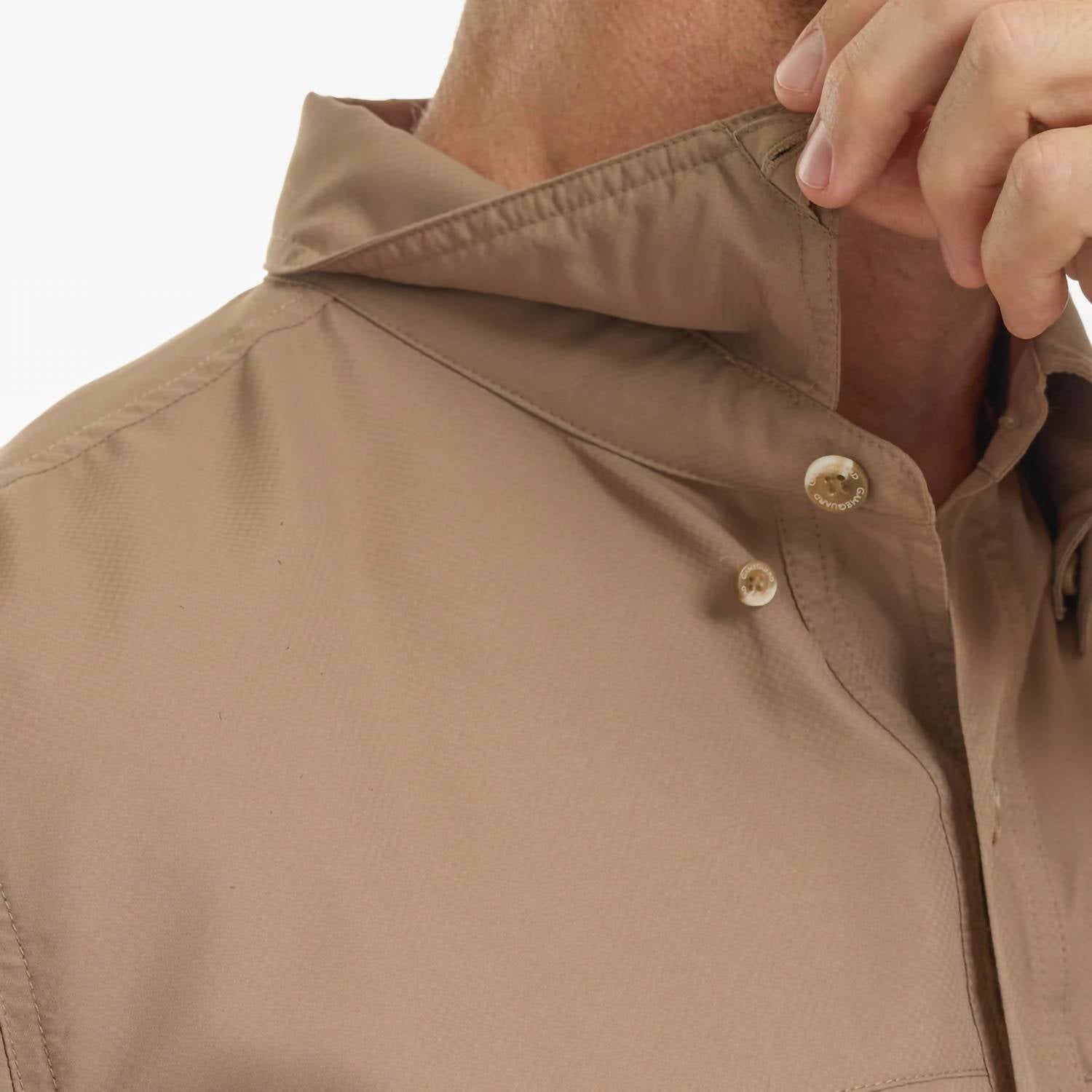 Elevate your outdoor wardrobe with the Original Microfiber Short Sleeve Shirt by GameGuard, designed for the adventurous spirit. In a rich Bark color, this men's casual button-down shirt is crafted from 100% polyester for a lightweight feel and features a button closure. The shirt's design includes hidden chest pockets for convenience, while its mesh-lined vents enhance airflow. With machine wash and tumble dry instructions, this shirt offers easy care, making it a practical choice for vacations or Thanksgiving gatherings.