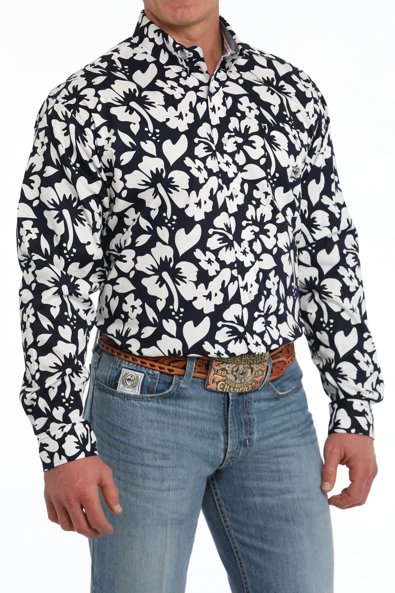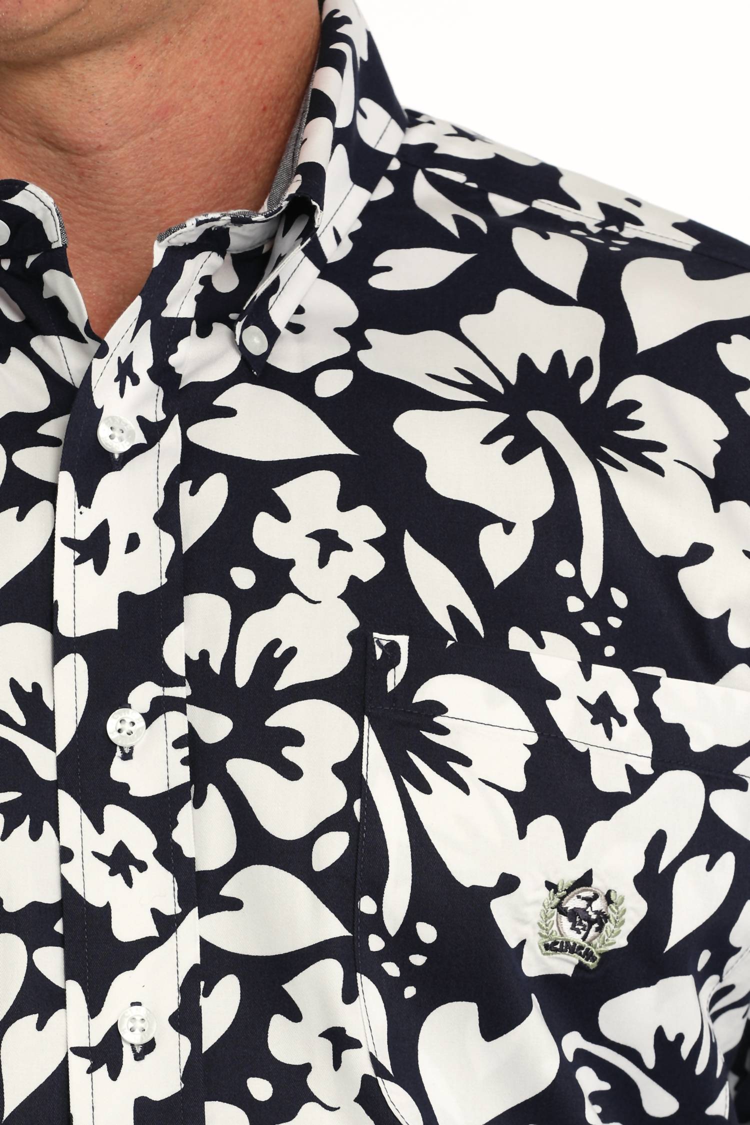 Embrace the spirit of the tropics with the CINCH Men's Long Sleeve Twill Print Shirt, perfect for your next holiday party. This casual button-down features a striking black and white floral pattern, complementing its long sleeves and classic collar neckline. Crafted with an easy button closure and functional pockets, it's an ideal addition to your spring wardrobe. Enjoy the perfect blend of style and functionality with this versatile piece.