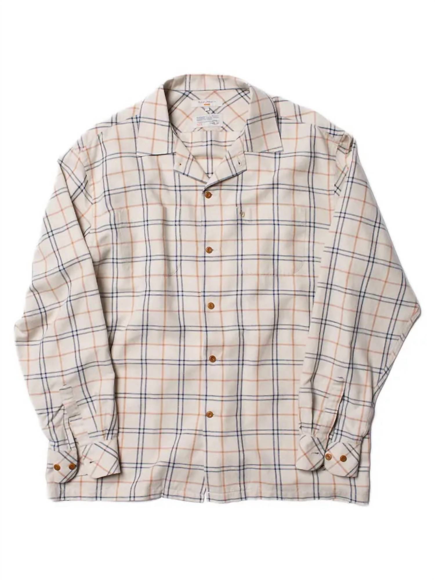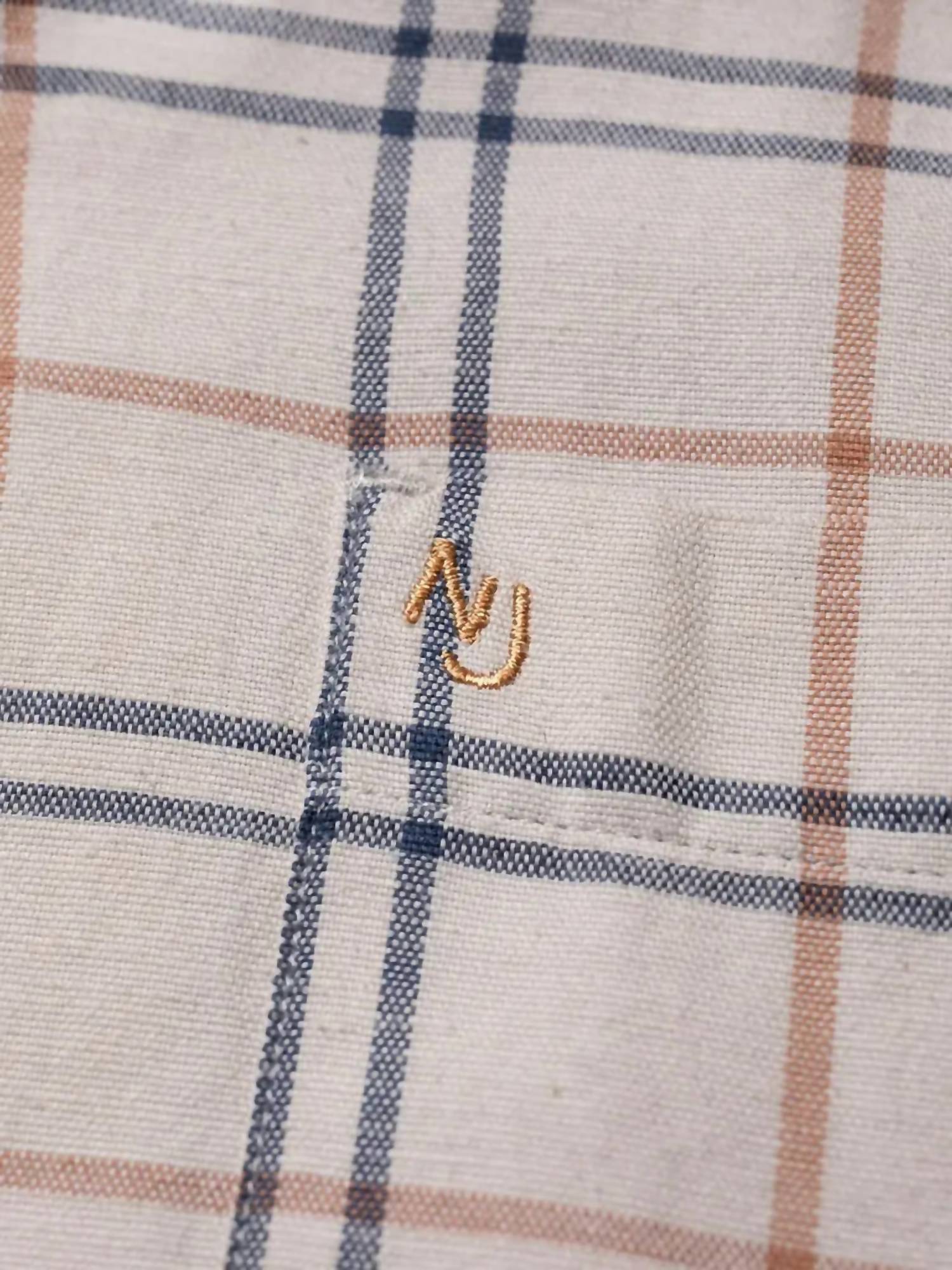 Embrace effortless style with the Vincent Shirt by Nudie Jeans in Florida Cream, a perfect addition to any minimalist wardrobe. This casually refined piece features long sleeves and a laid-back camp collar, making it ideal for a dinner party setting. Crafted from a sustainably sourced blend of 82% organic cotton and 18% linen, it offers a unique texture with an appealing crinkled character, complete with a chic plaid & check pattern. Closure is via classic corozo buttons, ensuring a timeless look.