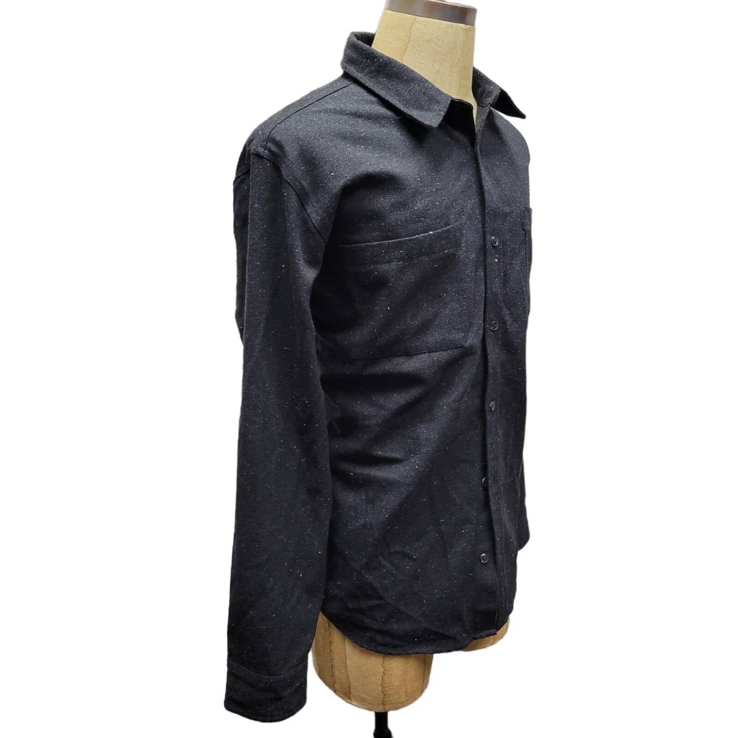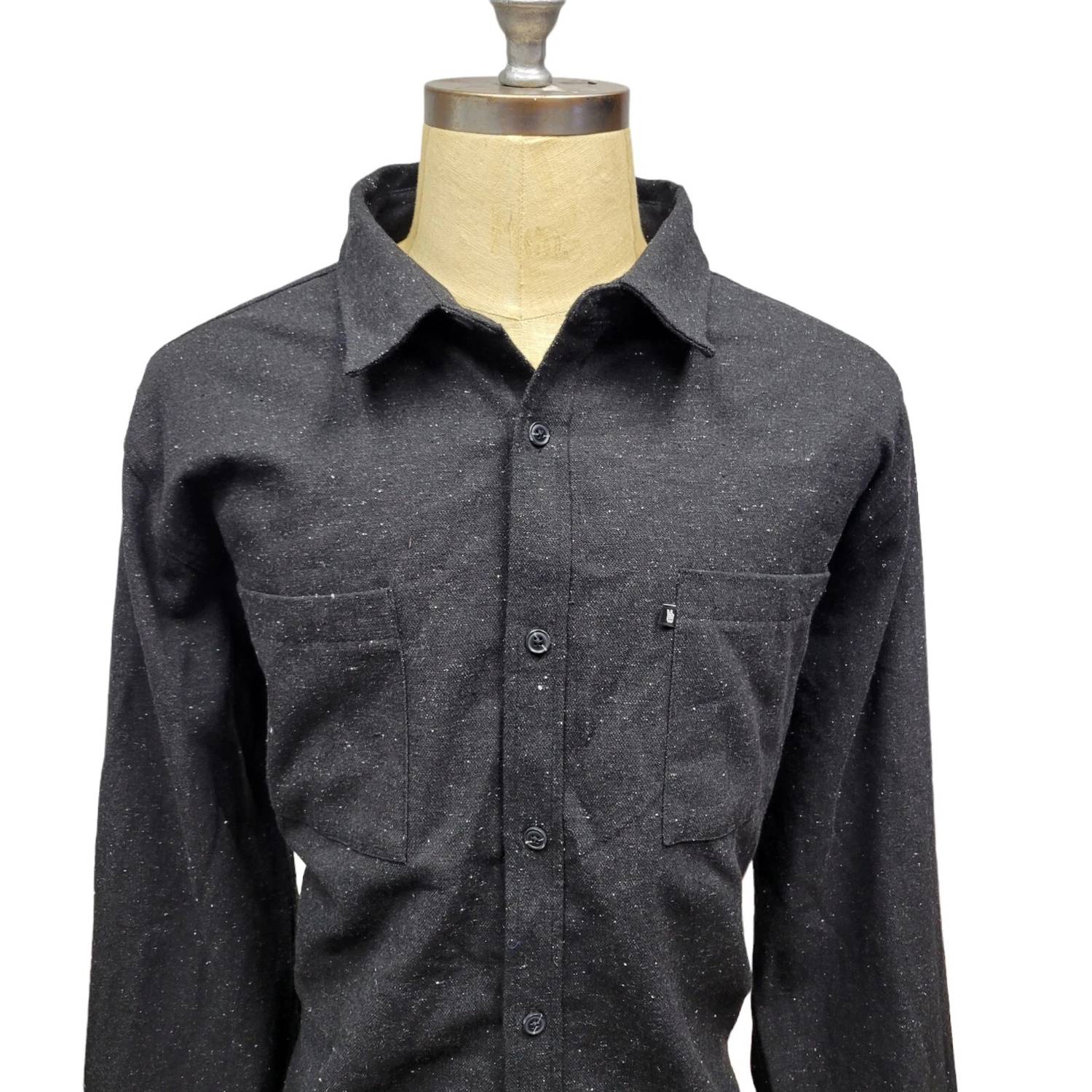 Elevate your workwear wardrobe with the Men's Long Sleeve Double Pocket Woven Shirt by Junk Food, a chic black staple perfect for the fall season. Crafted with a comfortable 65% Cotton, 35% Polyester blend, this shirt offers a textured finish for added style. It features a classic collar neckline, convenient chest pockets, and a practical button closure. Made in Indonesia, this 28" length shirt is easy to care for with machine wash and tumble dry instructions.