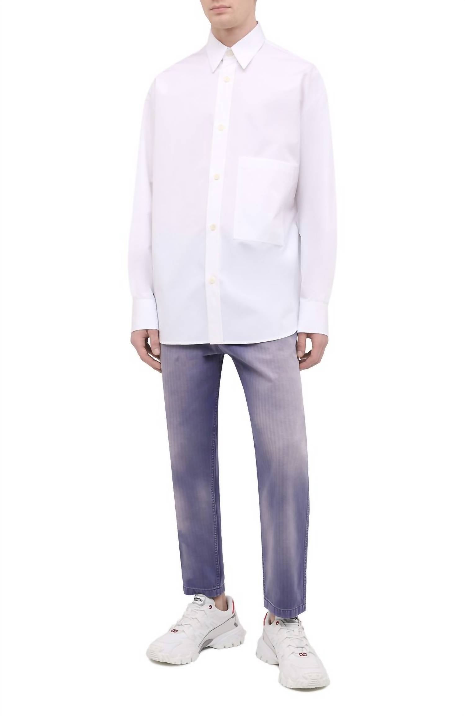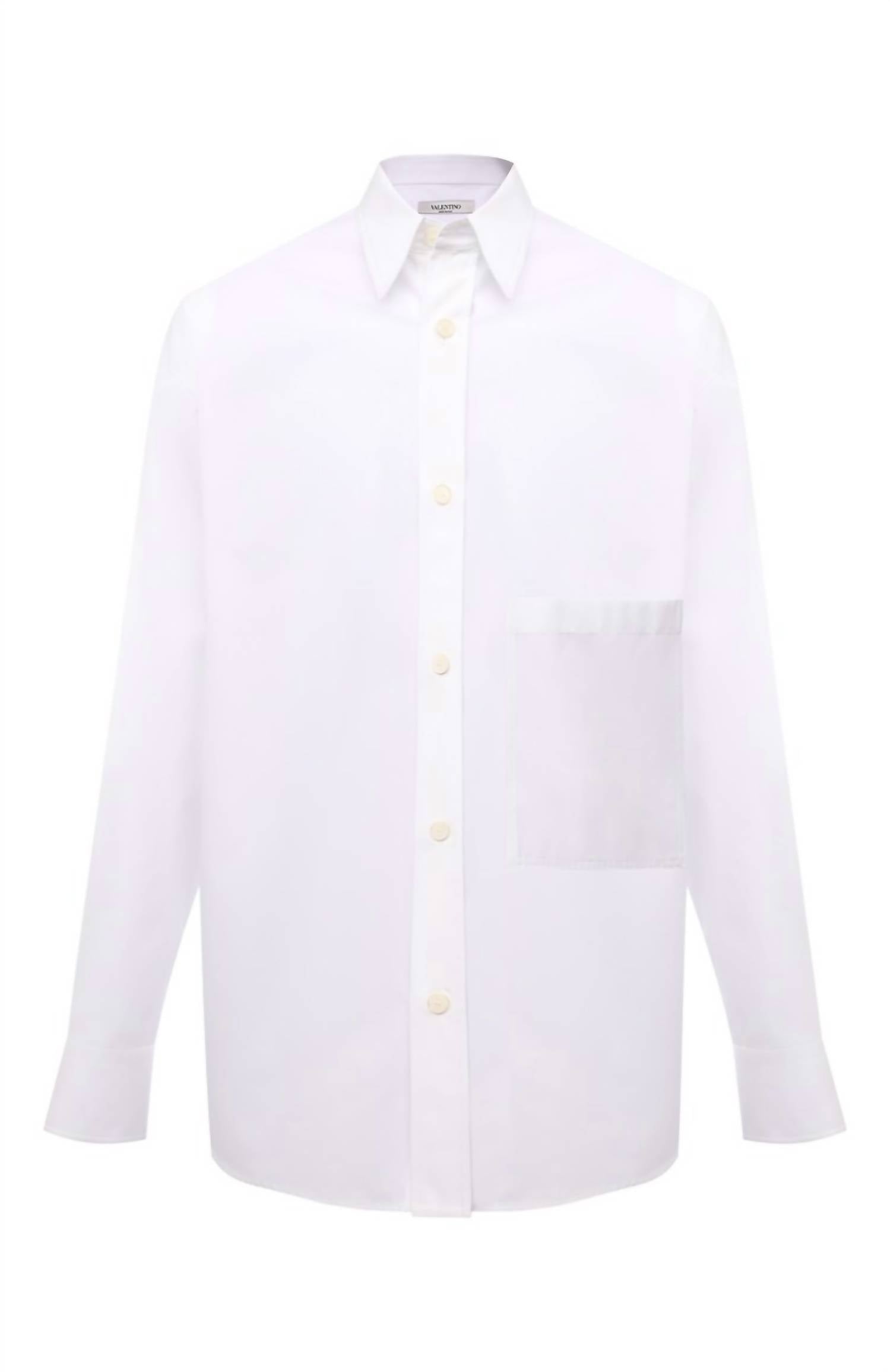 Valentino introduces the Chest Pocket Cotton Shirt, a refined wardrobe essential for the discerning gentleman. This long-sleeve piece is crafted from 100% crisp cotton, offering both comfort and sophistication. Its classic design features a chest patch pocket, a straight-point collar, and a front button closure, finished with a curved hem for a smart-casual look. Made in Italy, its care requires dry cleaning to maintain its pristine appearance.