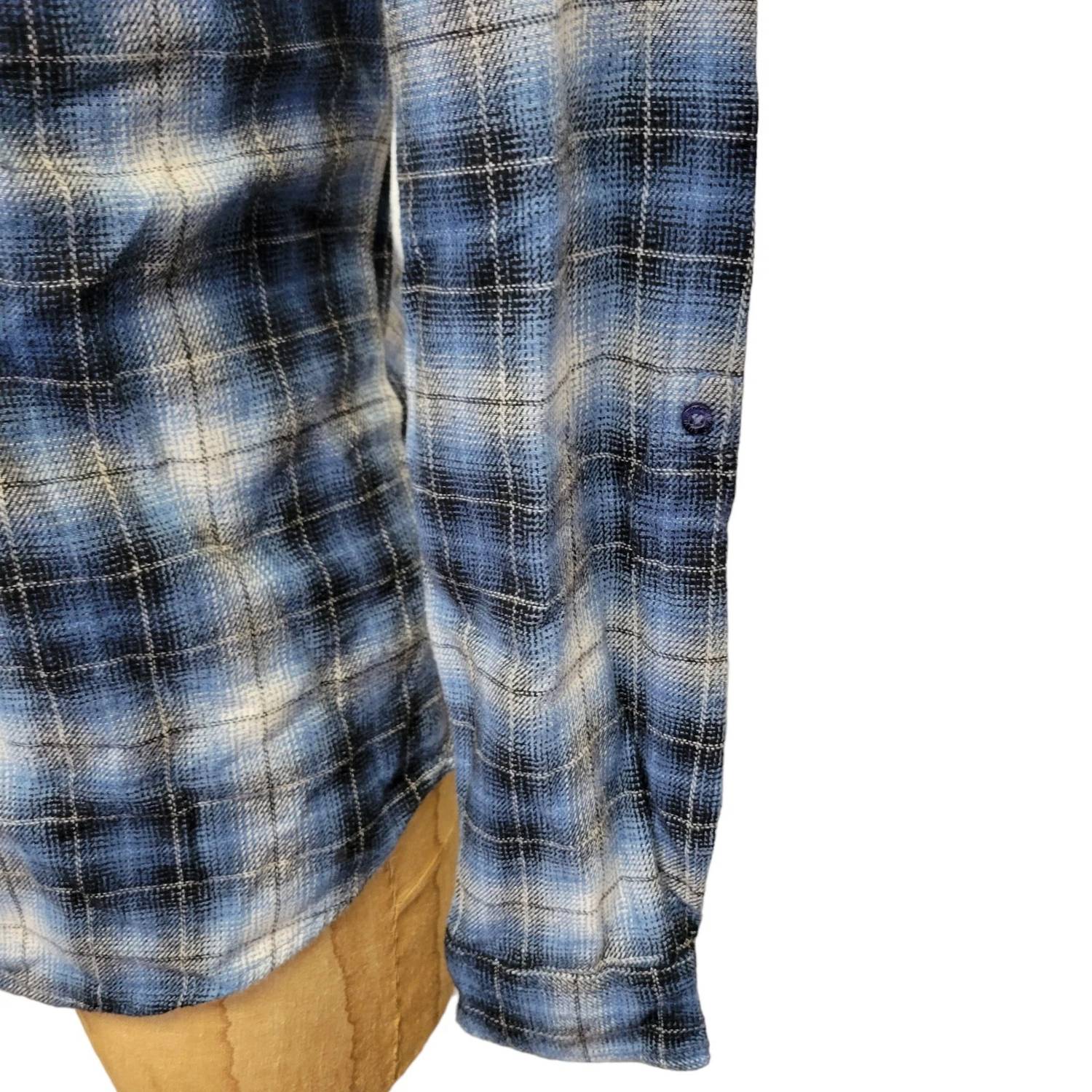 Upgrade your casual wardrobe with the Men's Plaid Long Roll Tab Sleeve Shirt by Silver Jeans Co, perfectly crafted for Fall style. This shirt features long roll tab sleeves and is made from 100% cotton for ultimate comfort. With a garment length of 33 inches, it fits seamlessly into a Western trend with its distinctive blue plaid pattern. Closure: Button closure. Care: Machine wash.