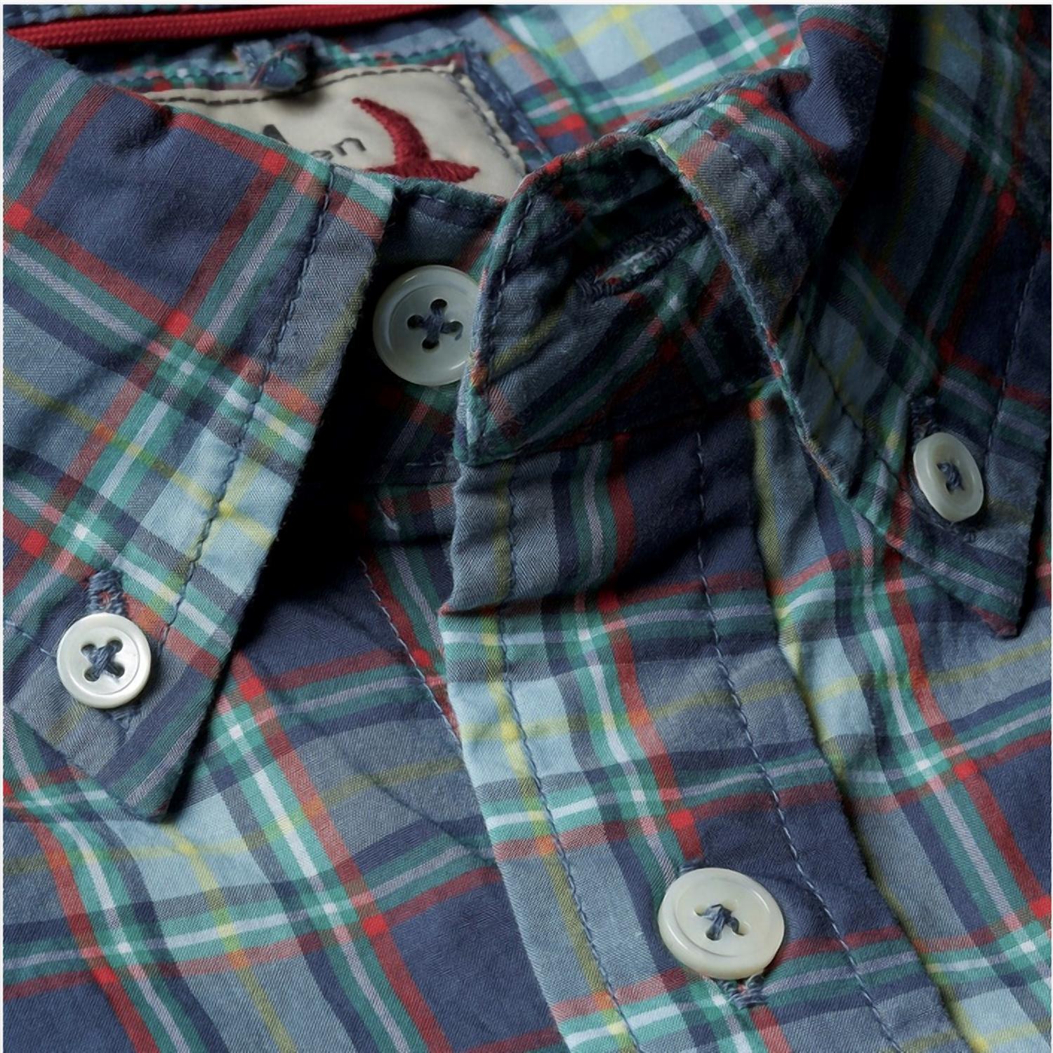 The Lakeshore Plaids Shirt by Relwen is a navy/red multi casual button-down shirt crafted from crisp cotton, offering a nod to timeless 90s fashion. This men's shirt features a handsome plaid pattern and a classic fit with a tapered waist, perfect for vacation occasions or everyday wear. It's designed with two-needle felled seams for a clean finish and a practical patch chest pocket for your essentials. For care, machine wash and tumble dry as needed.