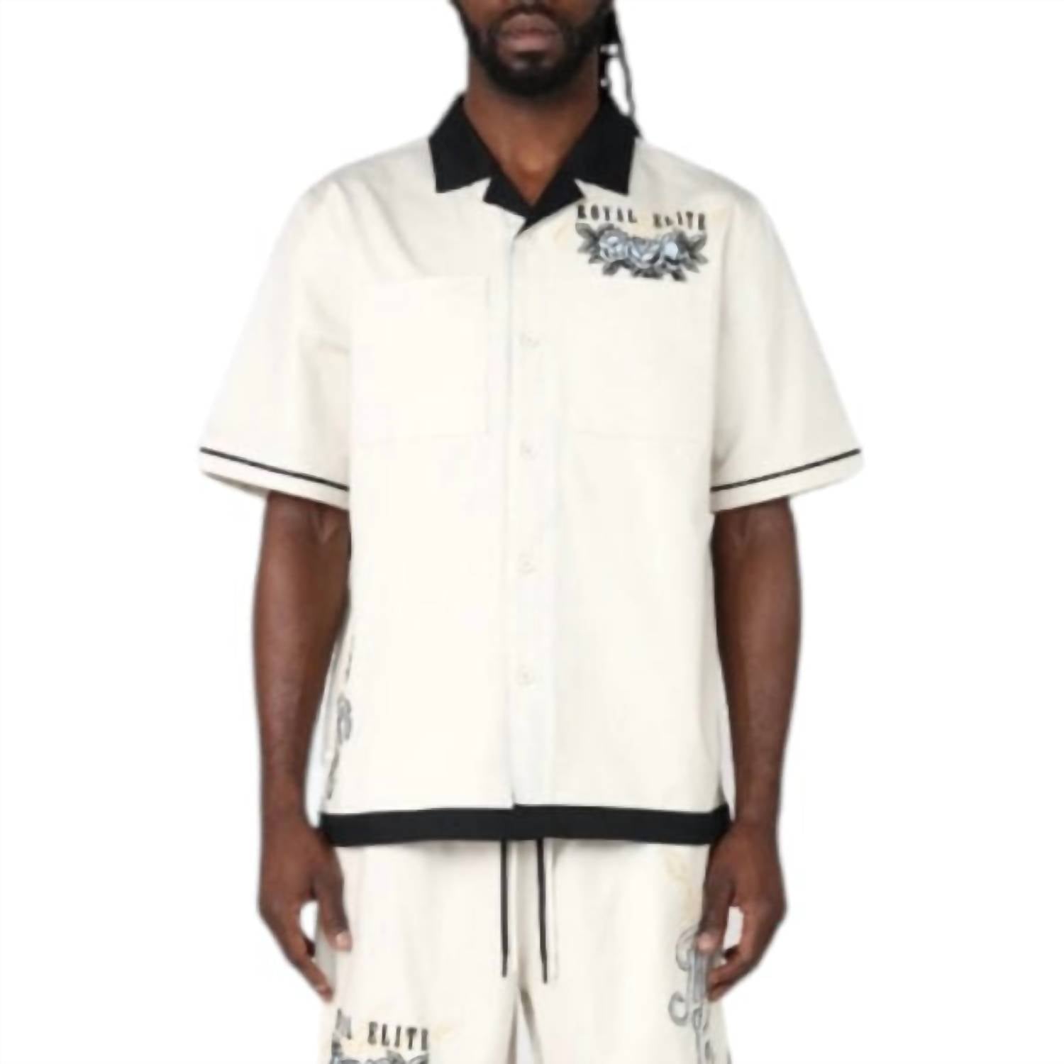 Introducing the Smoke Rise Boxy Country Club Casual Shirt, a streetwear essential perfect for summer outings. This men's shirt showcases short sleeves and a collar neckline, crafted from 100% cotton for comfort and breathability. It features a graphic pattern in ecru/scarab, complete with practical pockets and a button closure. Ideal for creating a relaxed and trendy look.