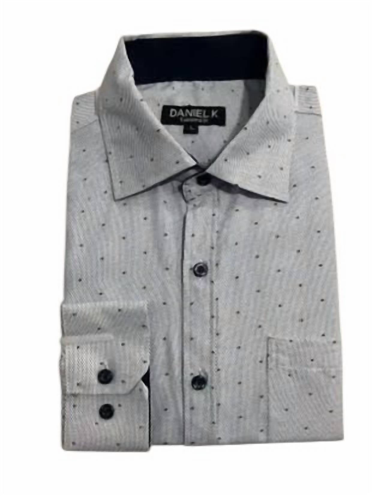 Introducing the Men's Polka Dot Long Sleeves Dress Shirt by Daniel K, a stylish addition to any wardrobe in sophisticated grey. This shirt features long sleeves and a classic collar, perfect for any casual or formal occasion. Designed with a button closure and a convenient pocket for practicality and flair. Pattern: Polka Dot.