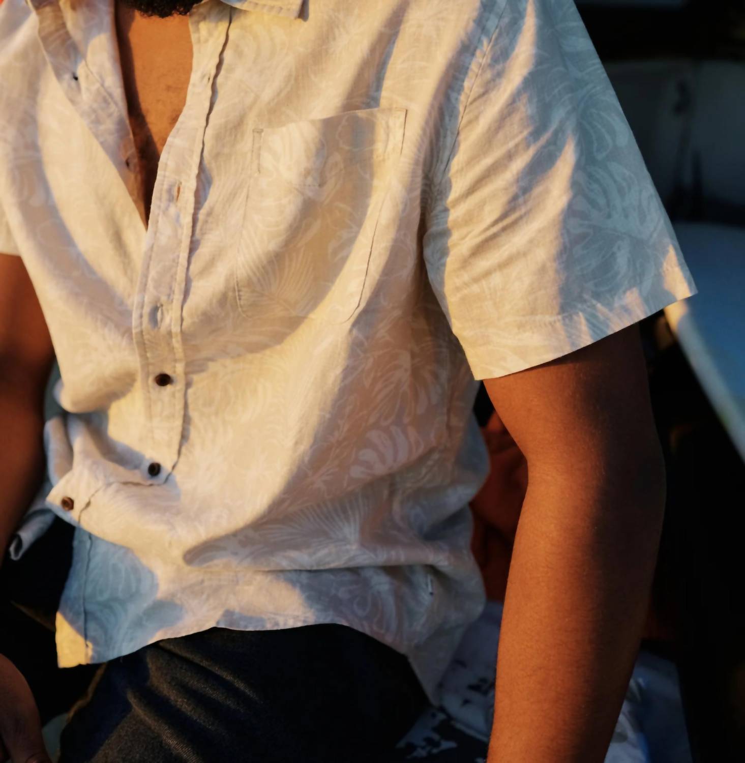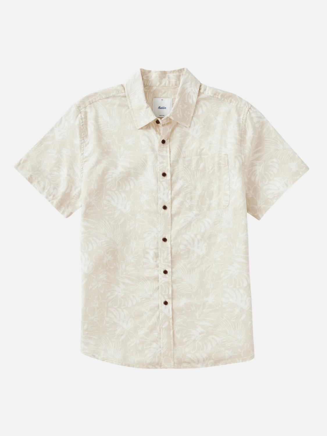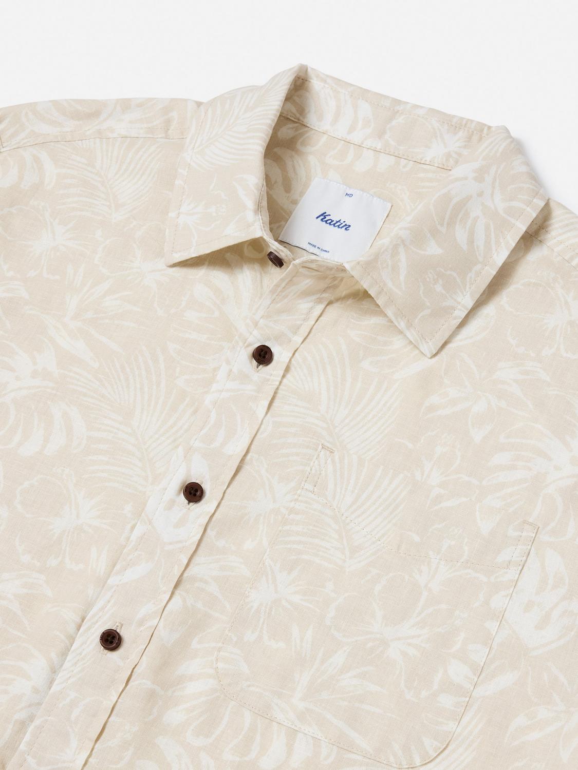 The Moco Shirt by Katin offers a refreshing take on casual wear with its custom floral print. Designed in a soothing Moon color, this short sleeve shirt is crafted from a breathable cotton-linen blend, comprising 55% cotton and 45% linen. It features a practical pocket at the left chest and a classic shirttail hem for a standard fit. Closure: Button closure. Ideal for holiday parties this summer, this shirt pairs well with relaxed, sunny retreats.