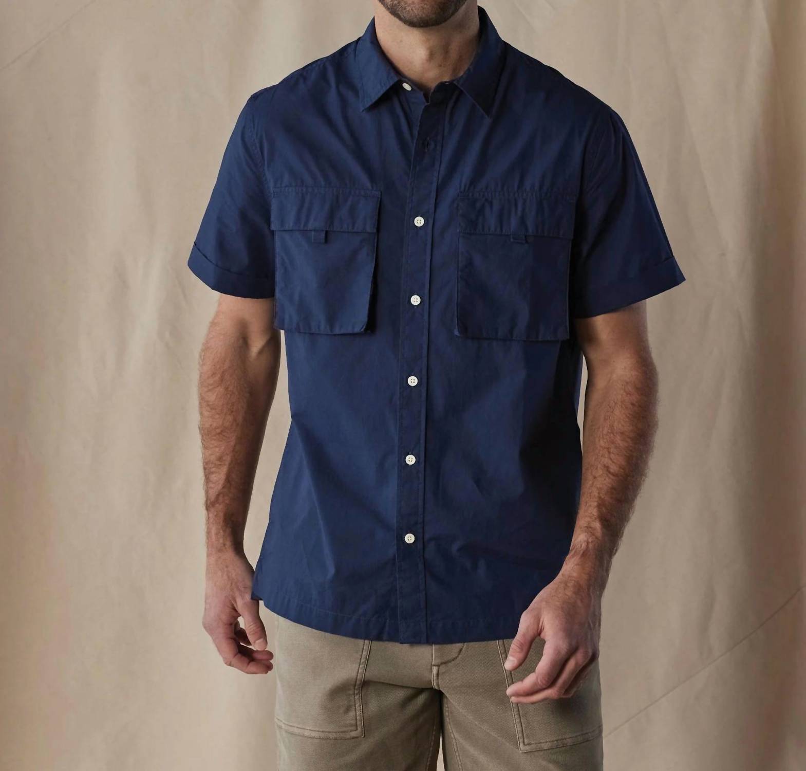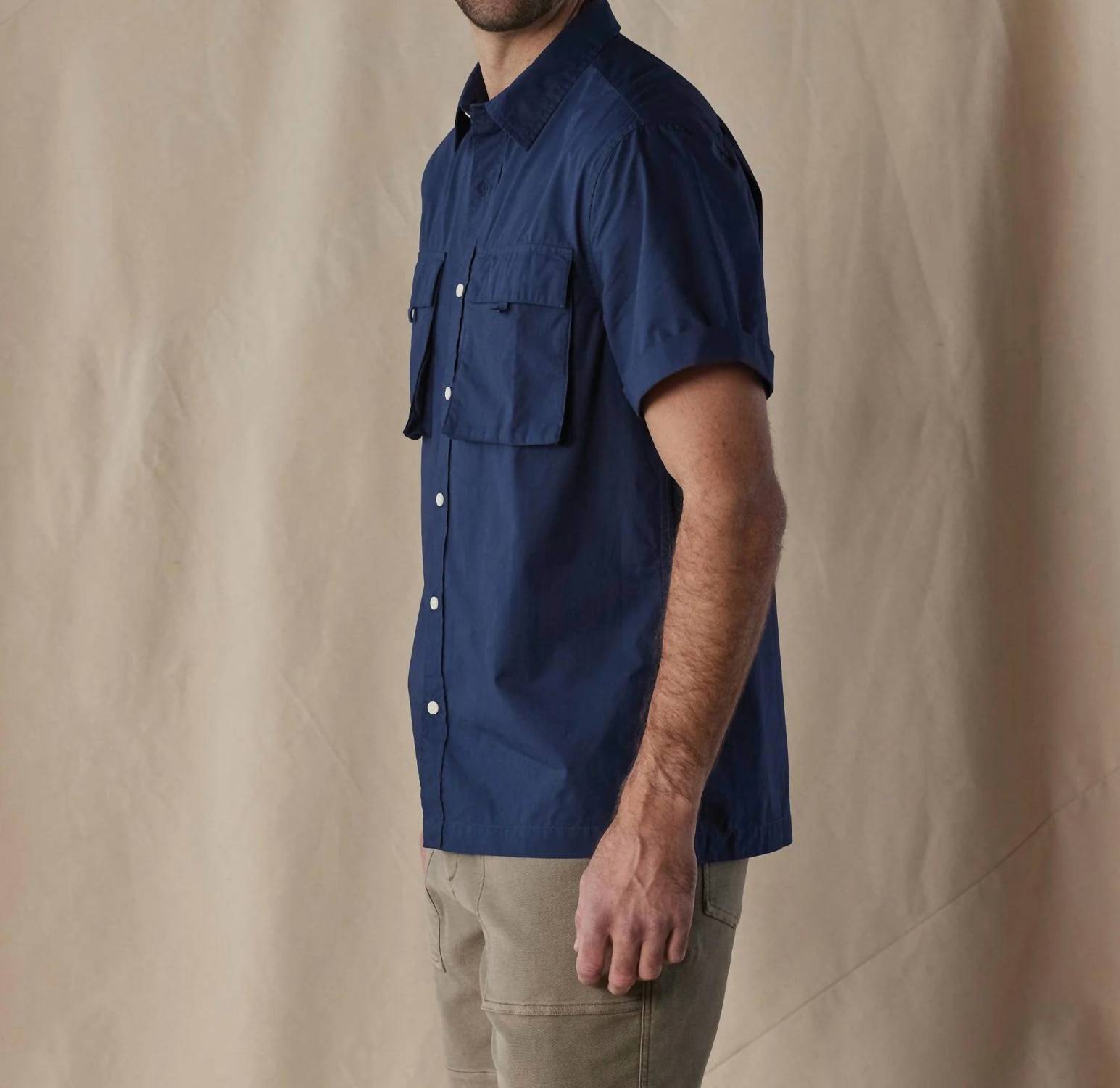 Discover the Expedition Classic Shirt by The Normal Brand in Summer Navy, an essential piece for your spring wardrobe. Crafted with a crisp, 100% cotton poplin, this shirt features short sleeves and a classic collar for a timeless look. The design is accentuated by two utilitarian envelope chest pockets with flaps and a button closure for a versatile style. Easy to care for, simply machine wash and tumble dry to maintain its minimalist appeal.