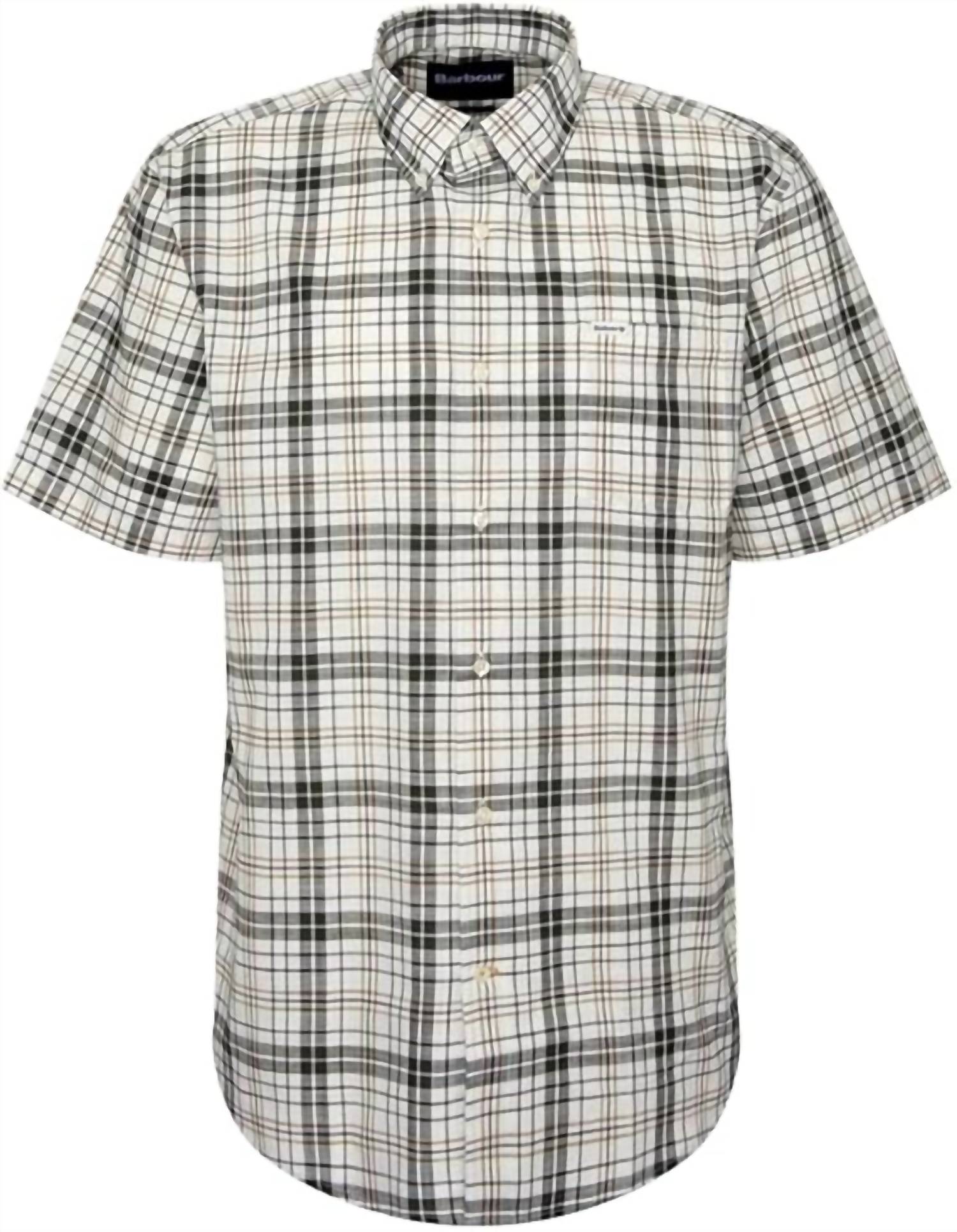 The Barbour Drafthill Regular Shirt is a stylish addition to any man's wardrobe, crafted from premium 100% Cotton for comfort and durability. With its short sleeves and classic plaid and check pattern in a rich olive hue, it exudes a timeless preppy look that's perfect for spring gatherings or holiday parties. The shirt features a convenient button closure and practical pockets, enhancing both its functionality and style. For ease of care, it is machine washable and can be tumble dried, ensuring it stays looking crisp and fresh with minimal effort.