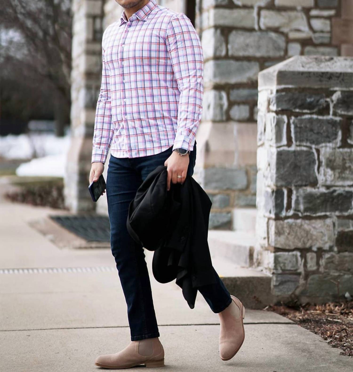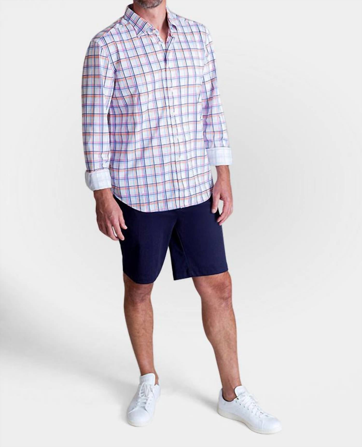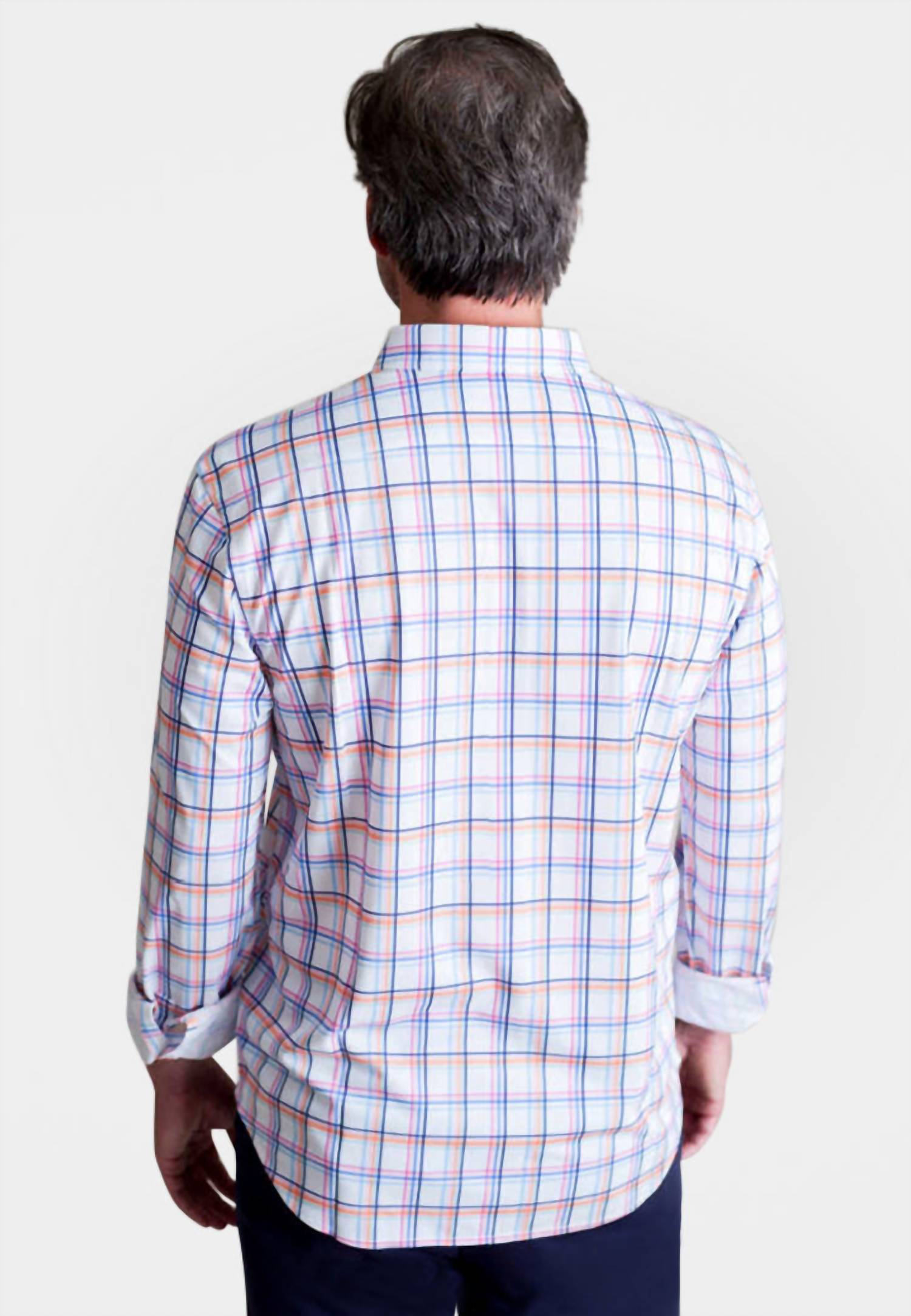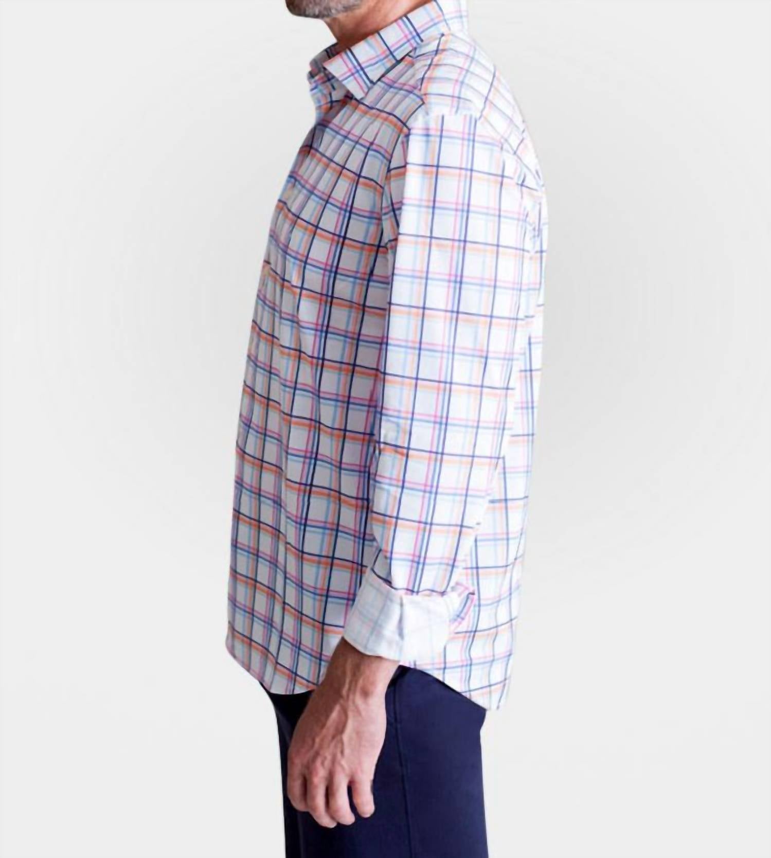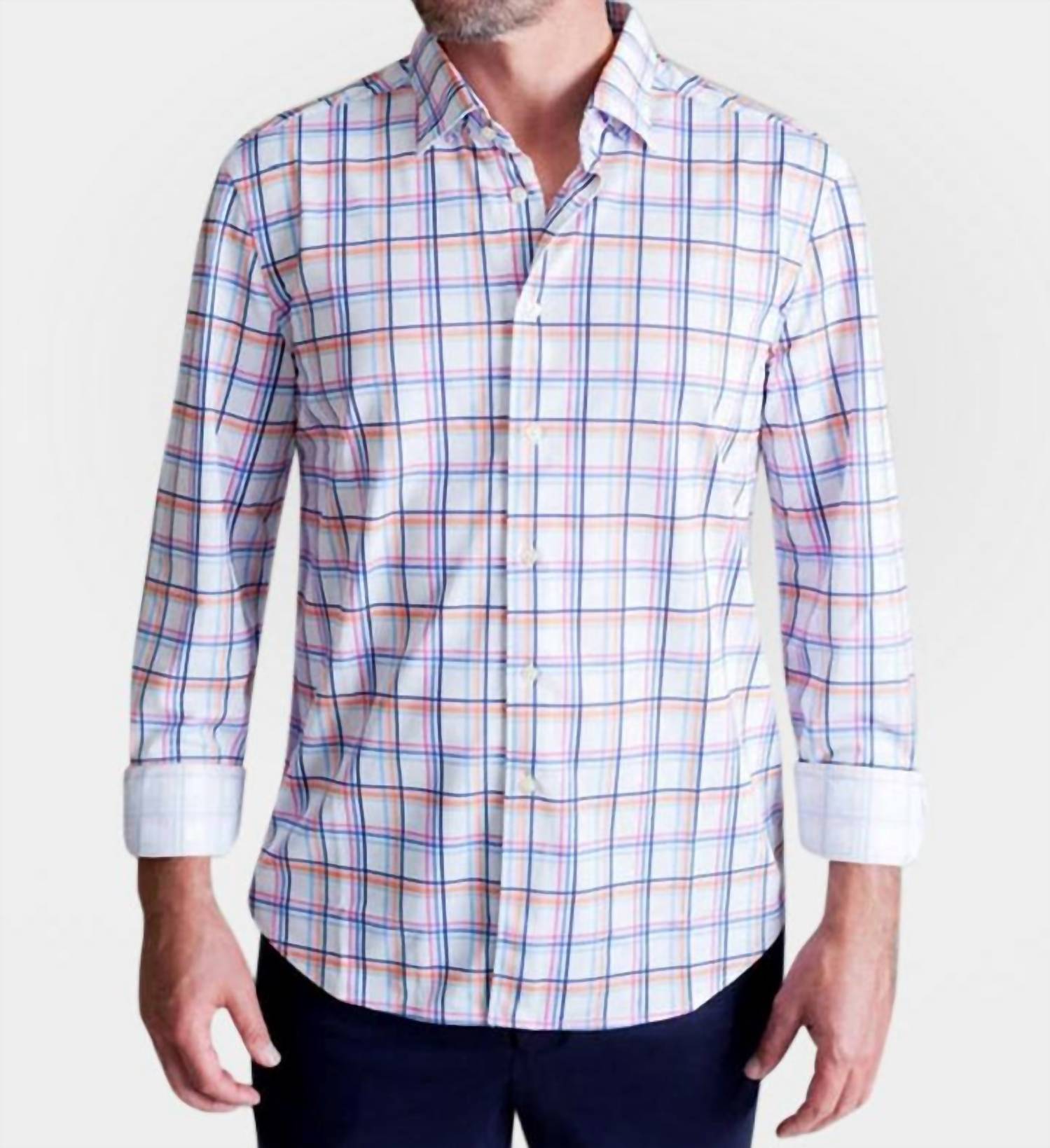Introducing the Men's Rob Plaid Long Sleeve Tech Shirt by Buki, a masterpiece of modern design crafted from innovative 100% Micro Poly for ultimate comfort. This long sleeve, plaid-patterned shirt features a tailored pieced on placket and a hidden button-down collar, designed with a button closure for a polished look. Perfect for spring wear, this streetwear-inspired casual button-down top is engineered with Buki Core Tech for moisture management, wrinkle resistance, and four-way stretch, ensuring optimal fit and ease of movement. Model is 6'1" and is wearing a size Large.