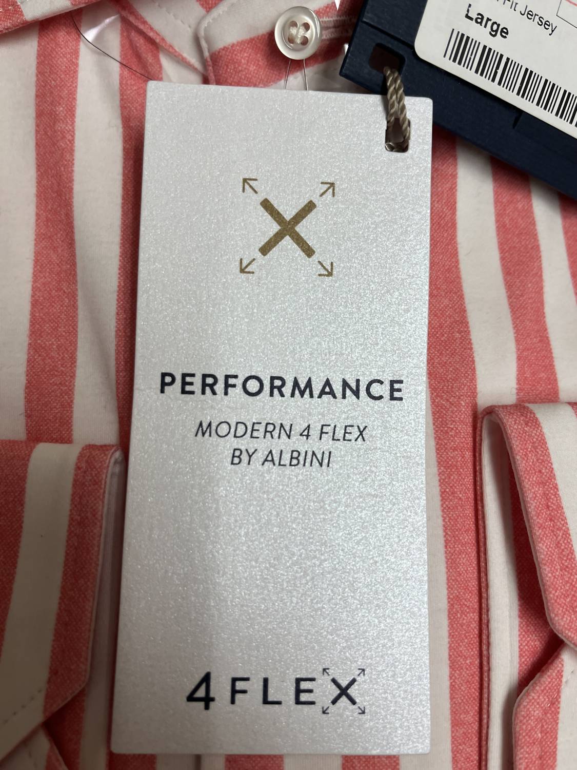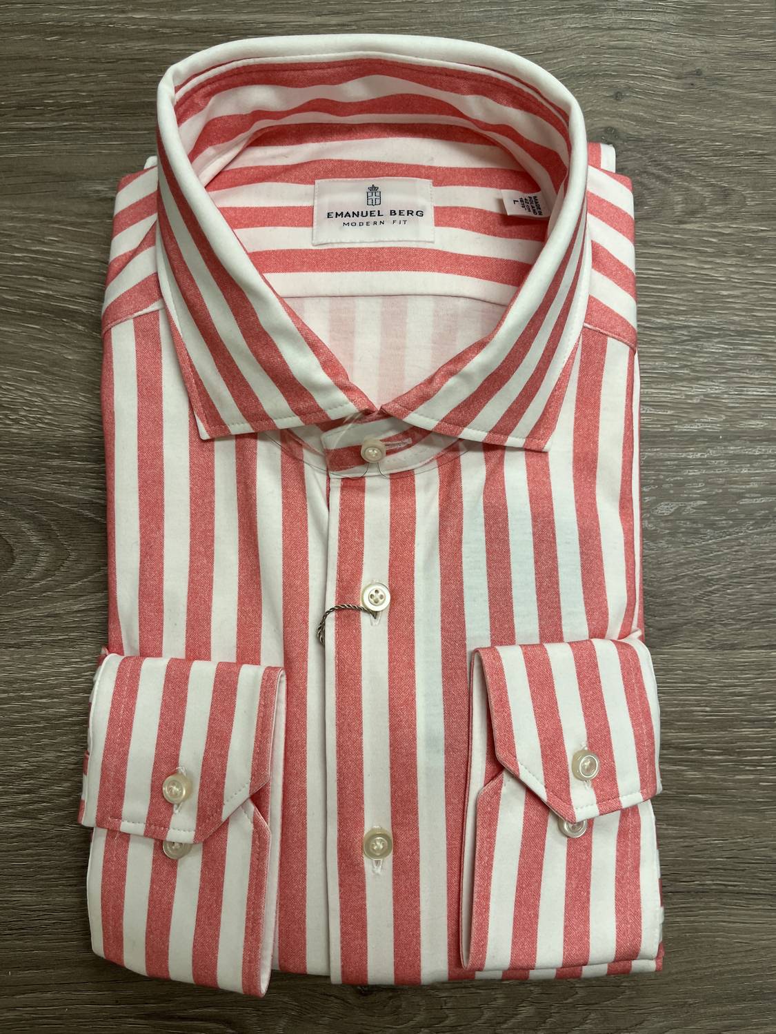 The shirt made of the Italian 4Flex Jersey cotton, designed by Albini 1876 with movement and comfort in mind. Highly flexible, breathable and with a natural touch, 4Flex guarantees full freedom of movement, in a perfect synthesis of comfort and style. Adorned with a pattern of grey wide bold stripes, this shirt combines elegance and a sportswear spirit. Perfect to elevate your everyday style.