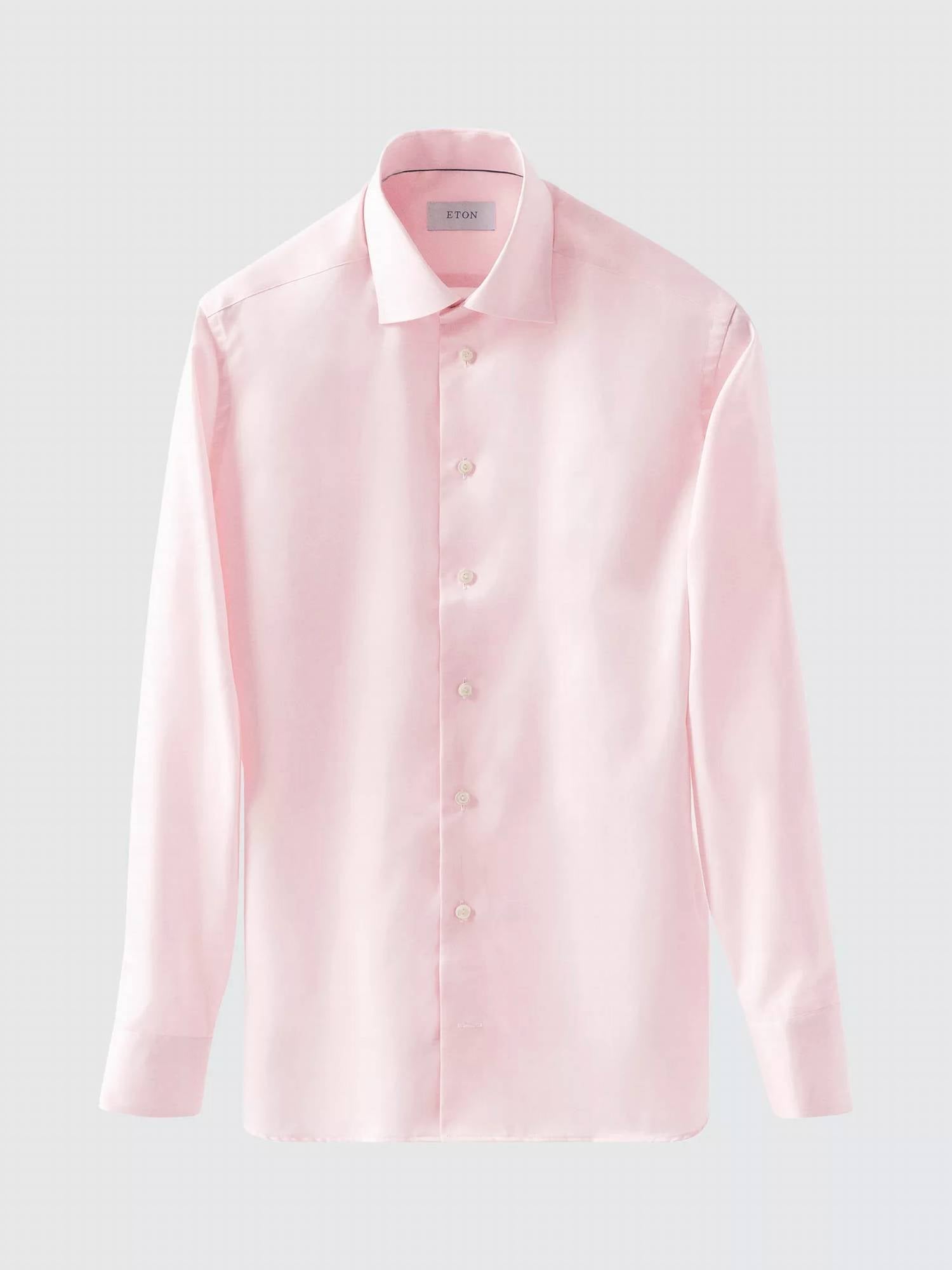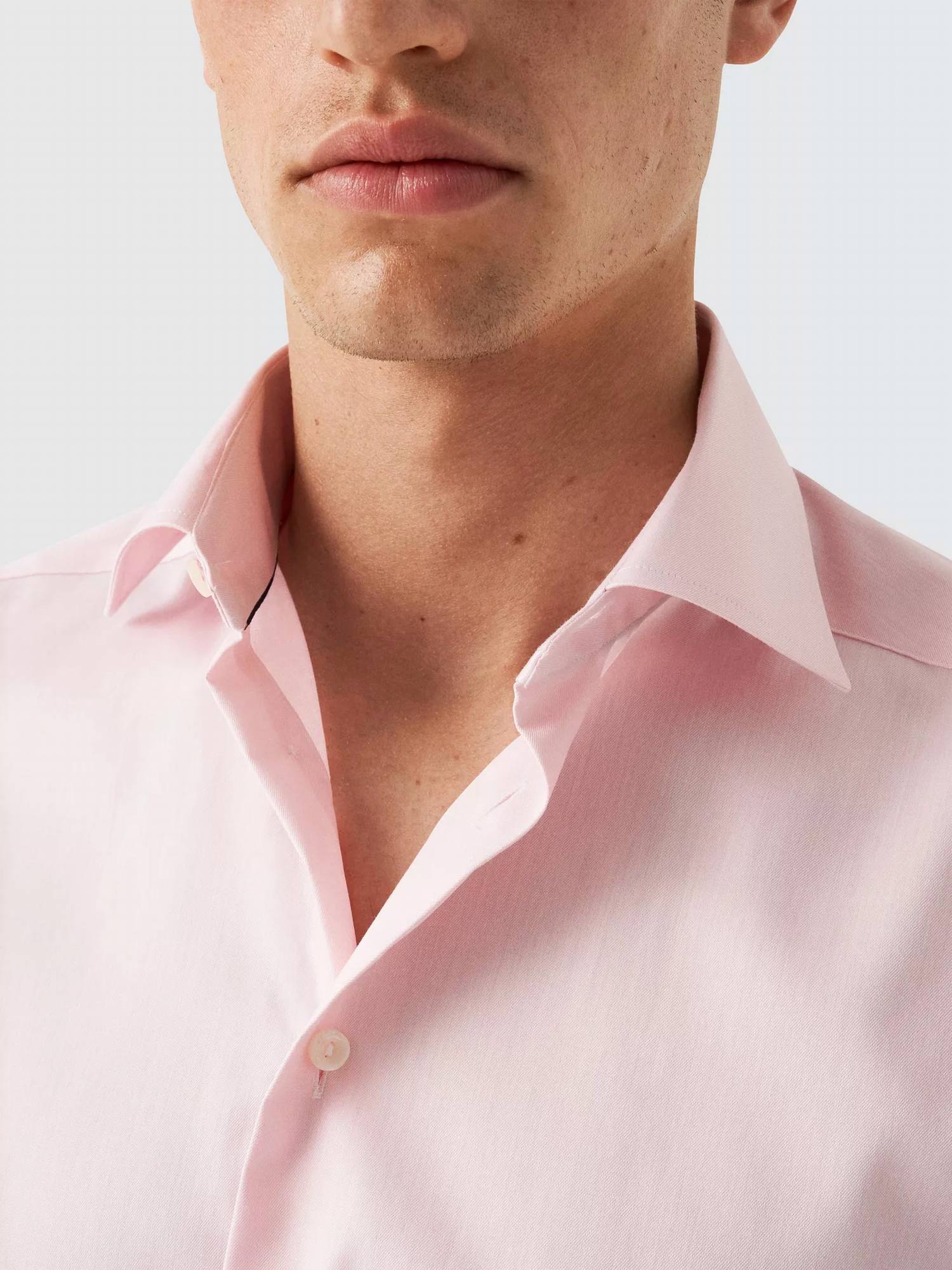 Presenting the New Eton Signature Twill Contemporary Cotton Shirt, a contemporary choice for the modern traveler. With long sleeves and crafted from 100% cotton, this shirt ensures comfort while showcasing a solid pink hue for a standout yet refined look. Made in Romania, it features a button closure and a classic collar, making it a versatile piece for any spring workwear wardrobe. Easy to maintain, it is designed for machine wash and line dry.