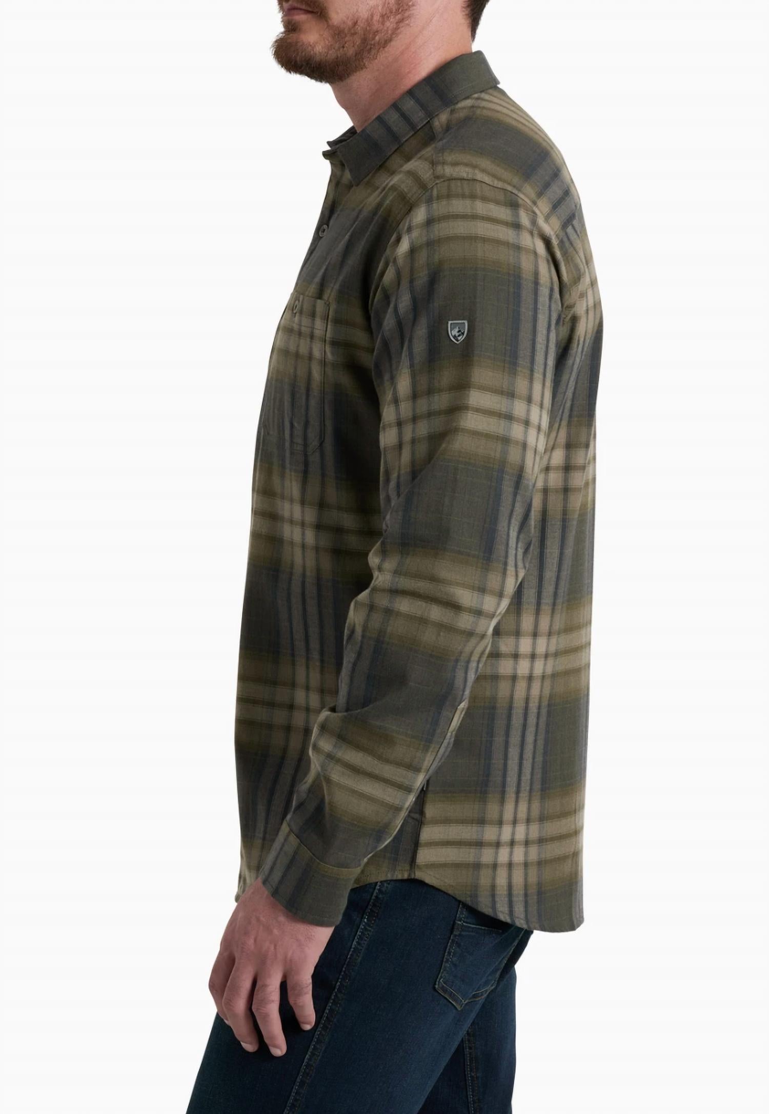 Experience everyday adventure with the KUHL Men's Fugitive Flannel Shirt, designed in a Smokey Sage color for timeless style. This casual button-down shirt features a plaid and check pattern with long sleeves and a practical pocket. Made from a breathable cotton blend with a touch of stretch, it's perfect for spring outings and dinner parties. Closure: Button closure. Care: Machine wash cold on a delicate cycle, tumble dry low, and iron on low temperature without steam.
