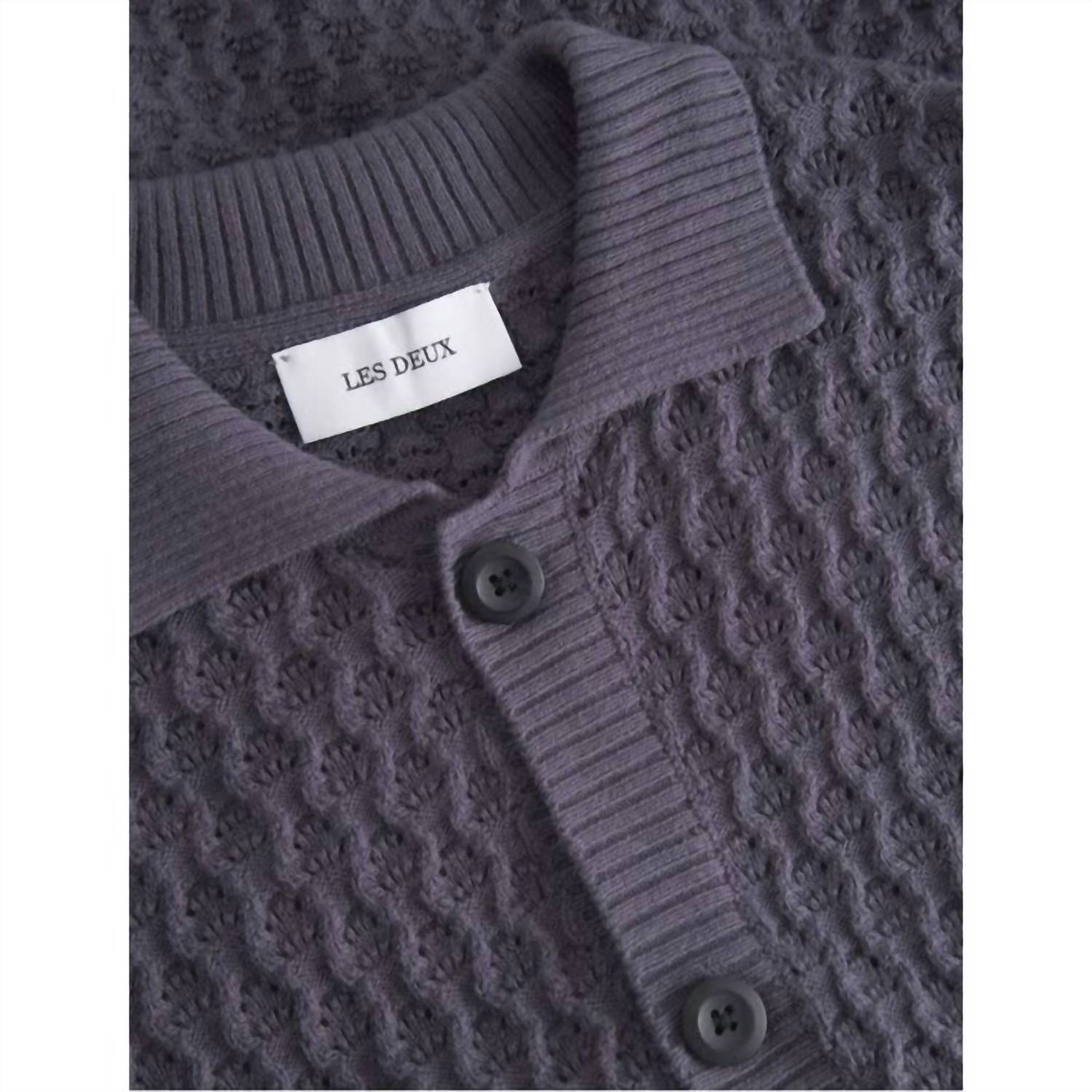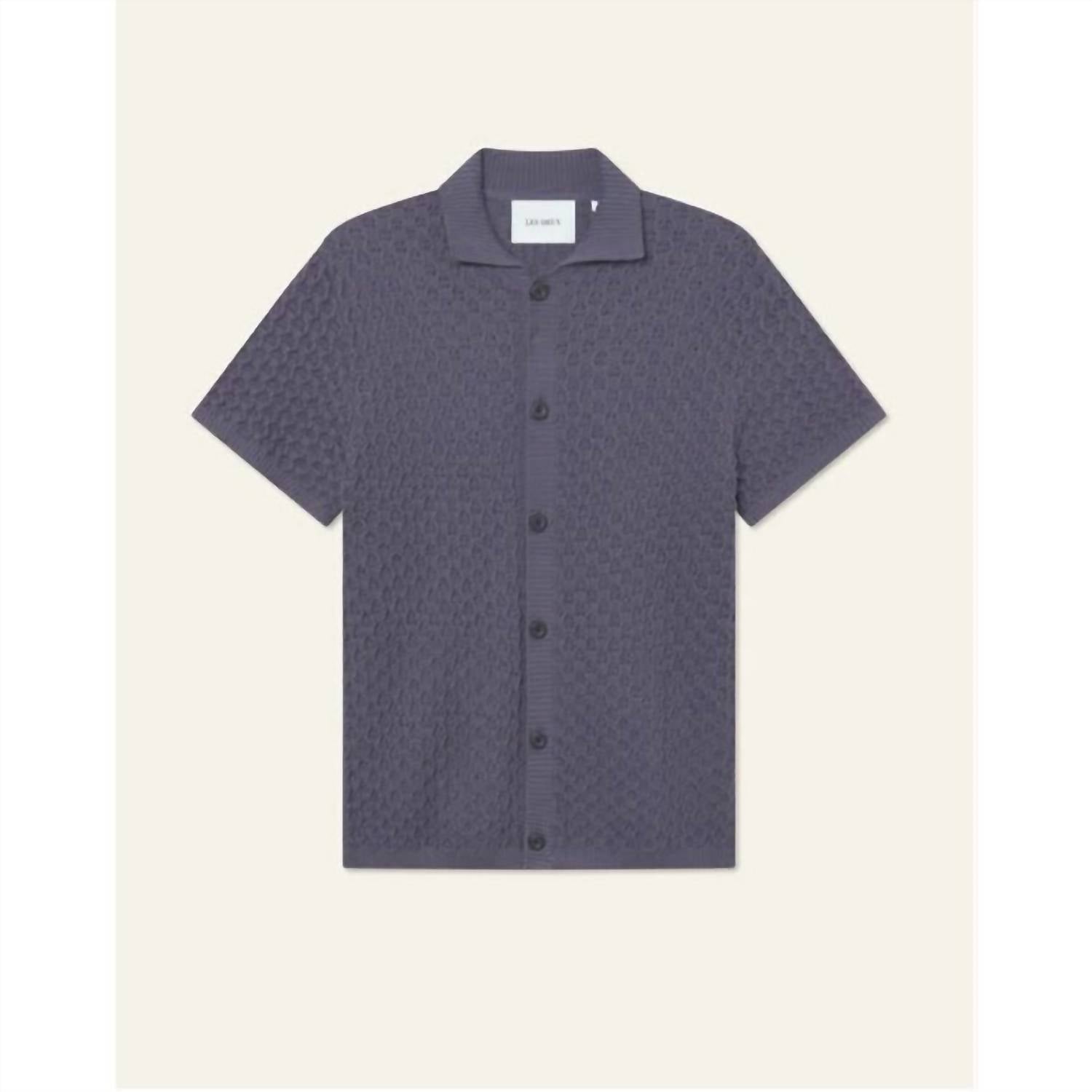 Discover the Men's Gespertus Short Sleeve Knit Shirt by Les Deux, a perfect blend of style and comfort in Graystone. This textured, cotton blend top is ideal for spring holiday parties with its classic collar and convenient button closure. Designed without pockets, it offers a sleek and streamlined look. Please note, specific care instructions are not provided, so handle with standard care for cotton blends.
