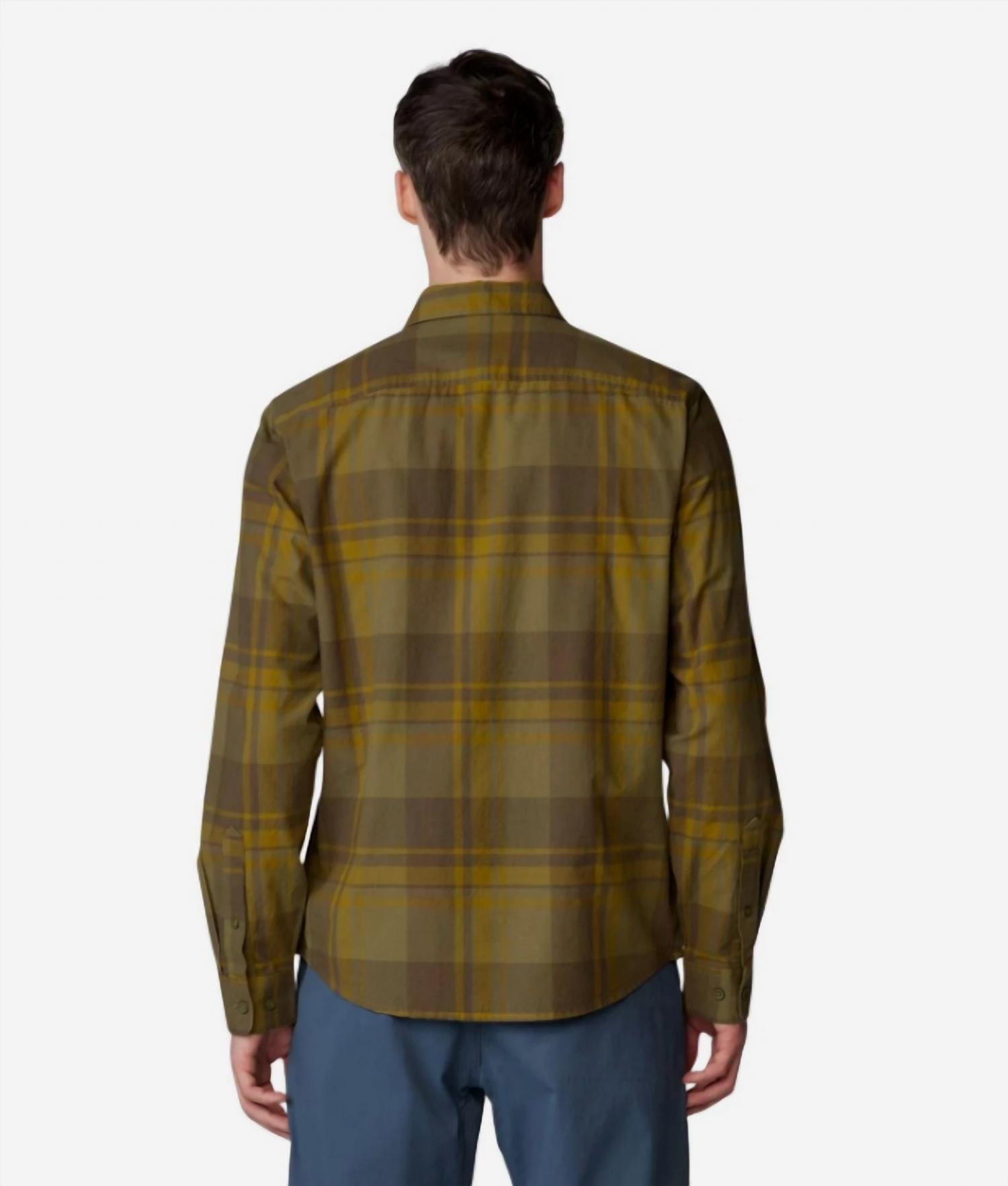 Discover the Big Cottonwood Long Sleeve Shirt by Mountain Hardwear, a must-have for travel with its classic Combat Green Fireside Plaid pattern. This men's casual button-down features a collar, pockets, and long sleeves, crafted from durable 100% Cotton. It ensures effortless style with a button closure for a snug fit. Easy to care for, simply machine wash and tumble dry for hassle-free maintenance.