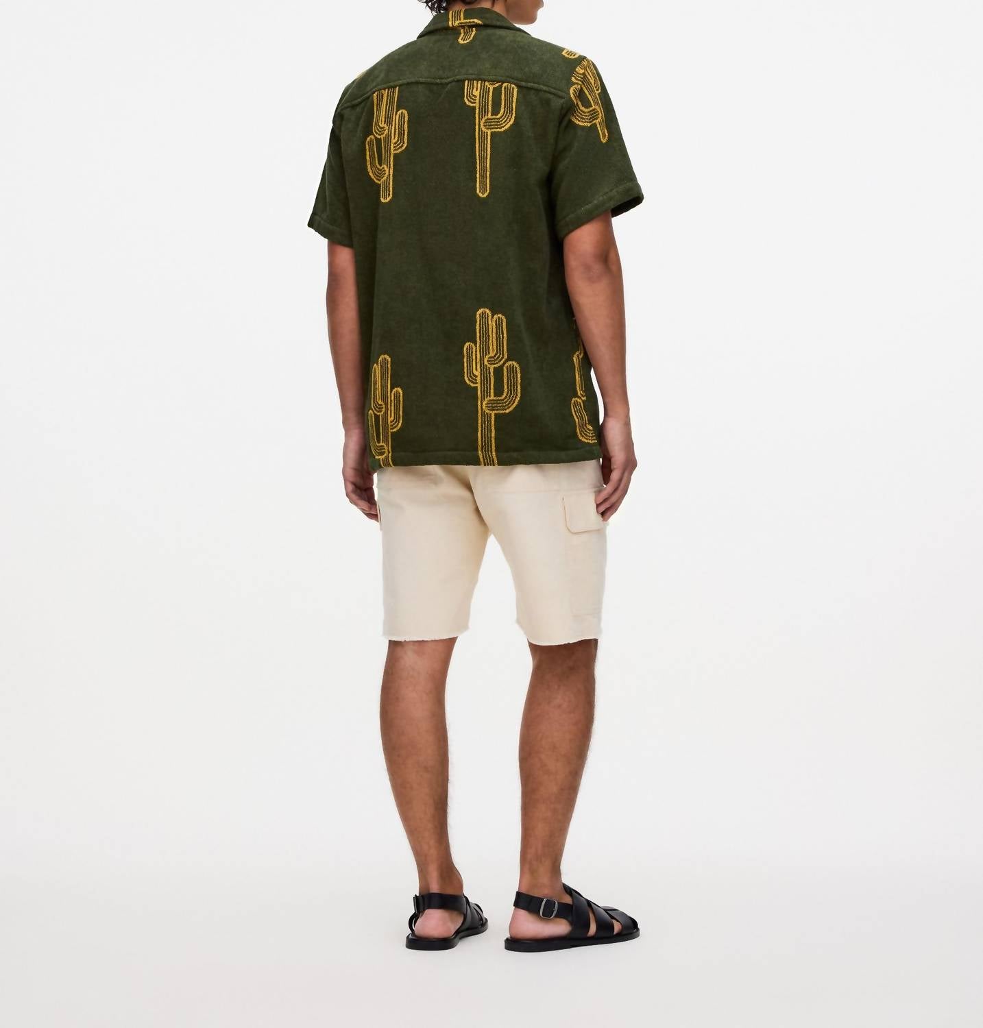 Your go-to summer essential, seamlessly blending style and comfort for a beach day or casual outing. Men's patterned shirt features a resort collar and short sleeves. Crafted from heavyweight, breathable jacquard-woven terrycloth made of 100% cotton in Portugal. Relaxed fit with slightly dropped shoulders and curved hemline offers effortless style. Button closure. Machine wash at 40°C inside out, avoid softeners, tumble dry on low, iron medium, and do not bleach or dry clean.