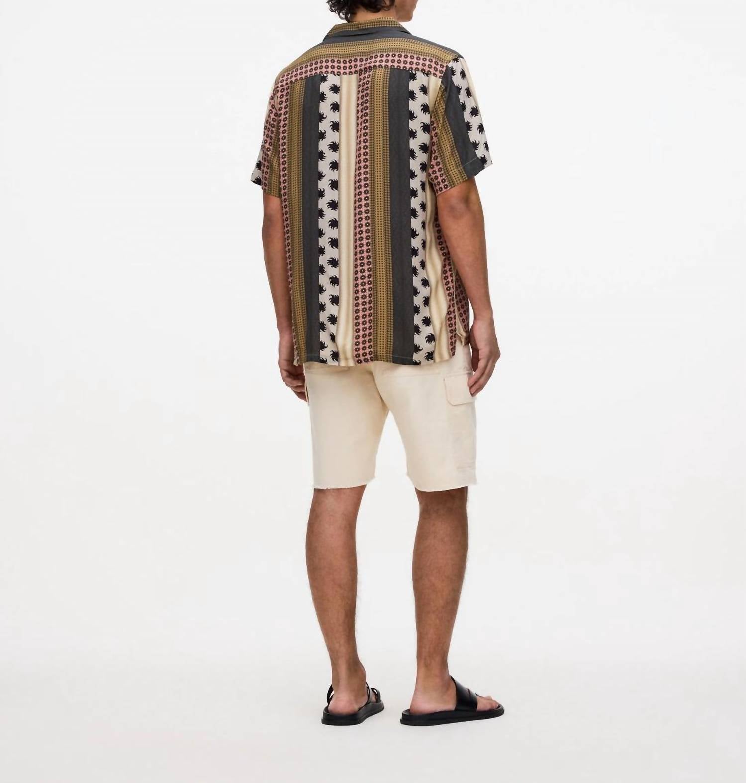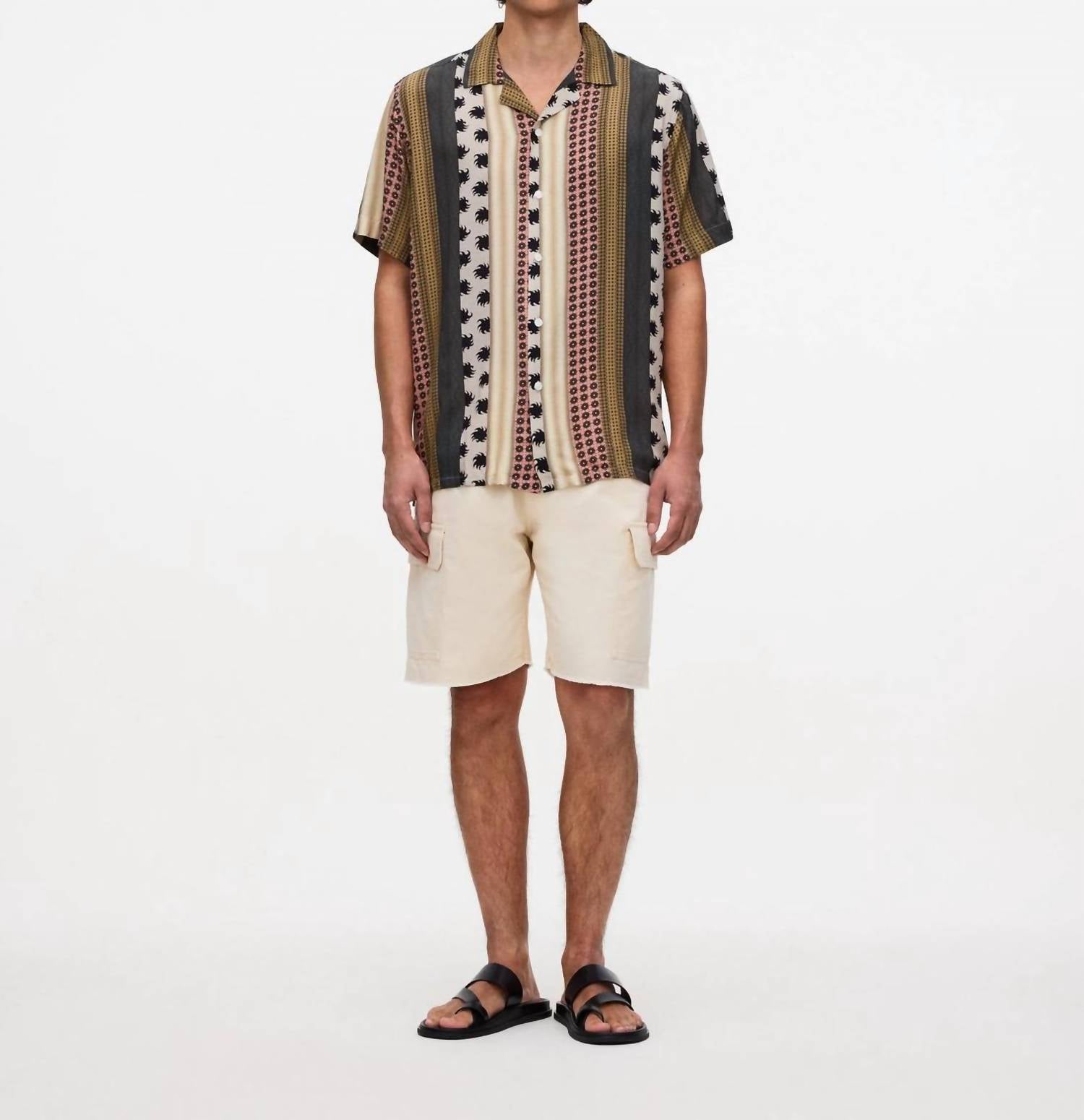 Elevate your vacation wardrobe with the Rocco Shirt by OAS, a stylish short-sleeve piece crafted from 100% viscose, perfect for summer days. This lightweight, breathable shirt offers a silky soft feel and features a resort collar for added flair. Made in Portugal, it boasts a multicolor pattern with a relaxed fit and slightly dropped shoulders. Closure: Button closure.