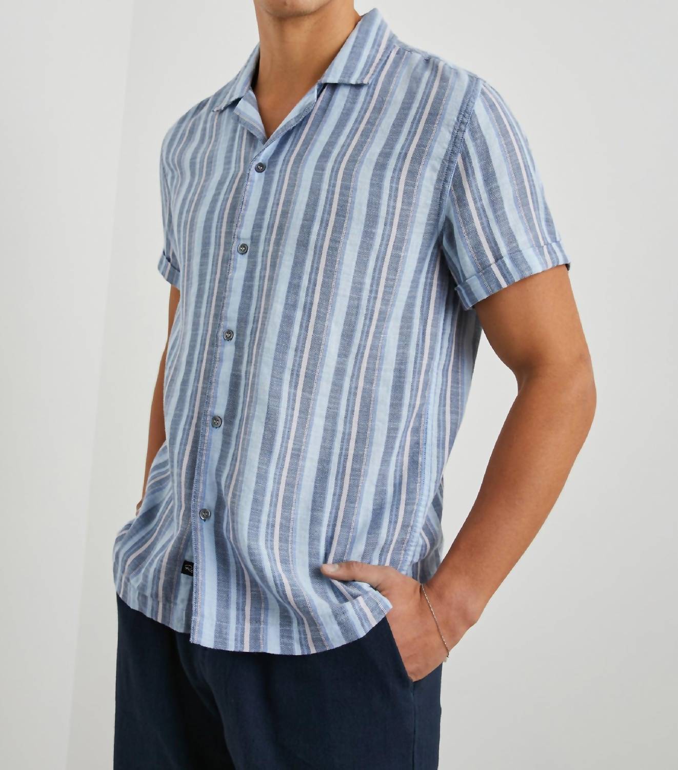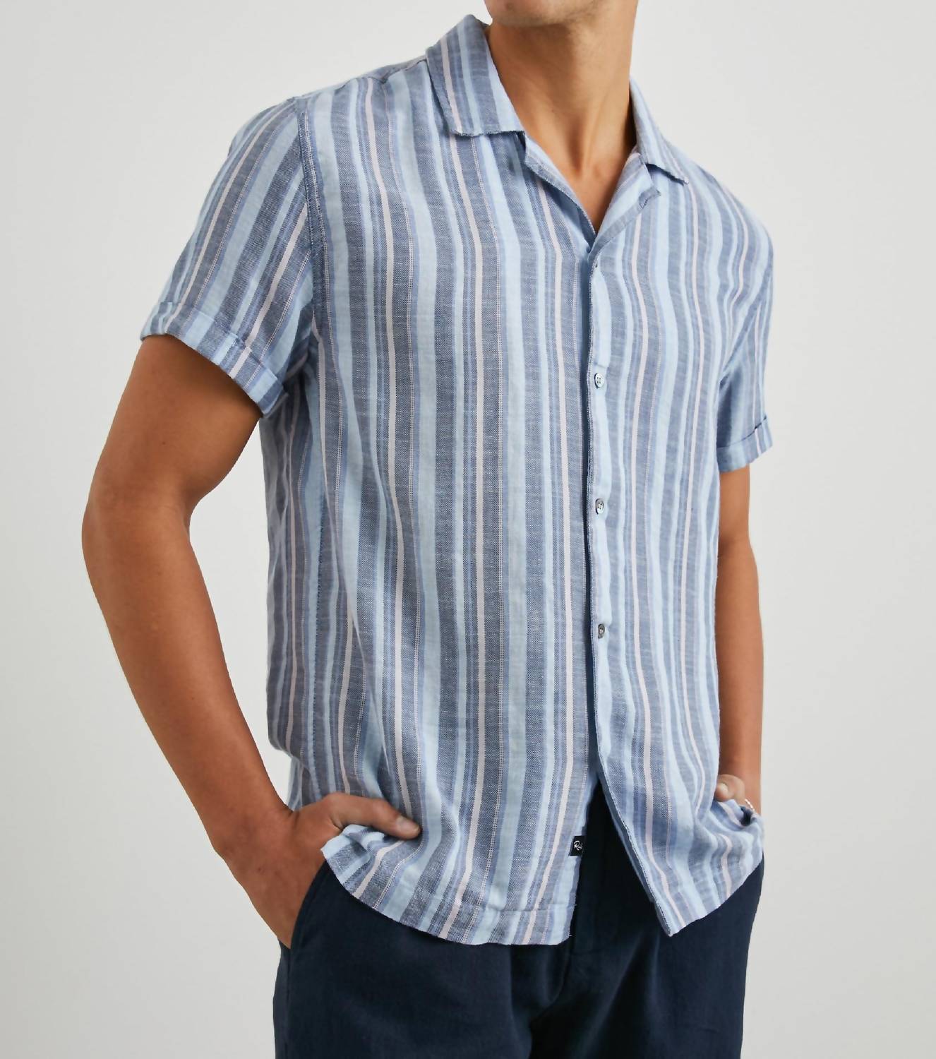 Discover the Amalfi Shirt by Rails, designed to elevate your summer style with its Powder Cobalt Stripe pattern. This casual button-down shirt features short sleeves and a classic collar, making it perfect for holiday parties with a preppy twist. Made from soft 100% Cotton and measuring 28.5 inches in length, it's both comfortable and stylish. Closure: Button closure. Care: Machine wash and tumble dry.