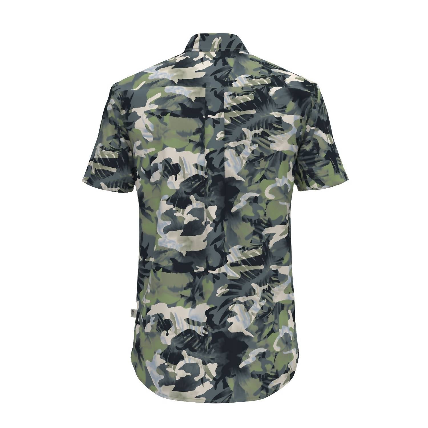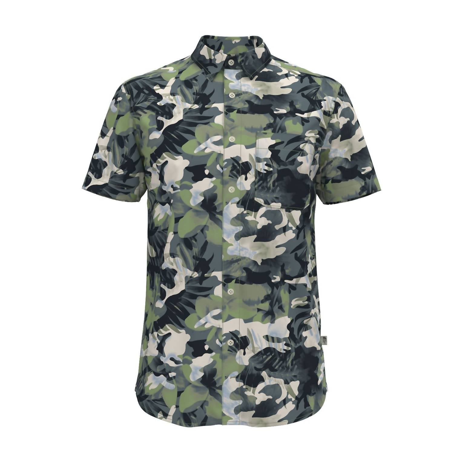 The Baytrail Pattern Short Sleeve Shirt by THE NORTH FACE is your ultimate choice for casual flair in Forest Shade Tropical Camo. Crafted entirely from breathable 100% cotton, this camouflage shirt offers a standard fit that can be worn open or closed, thanks to its button closure. Notably, it features a logo clip label on the left side seam and comes with pockets for added functionality. Care is simple with hand wash and line dry instructions. Ideal for anniversaries or any casual outing.