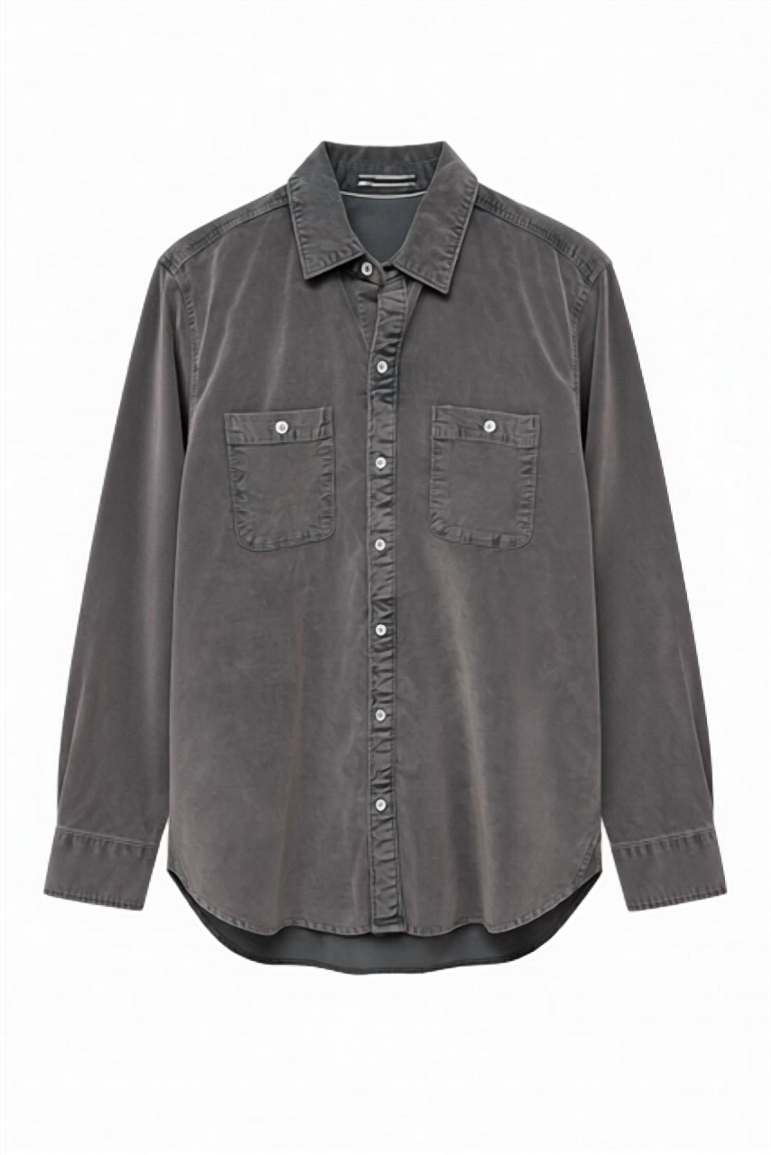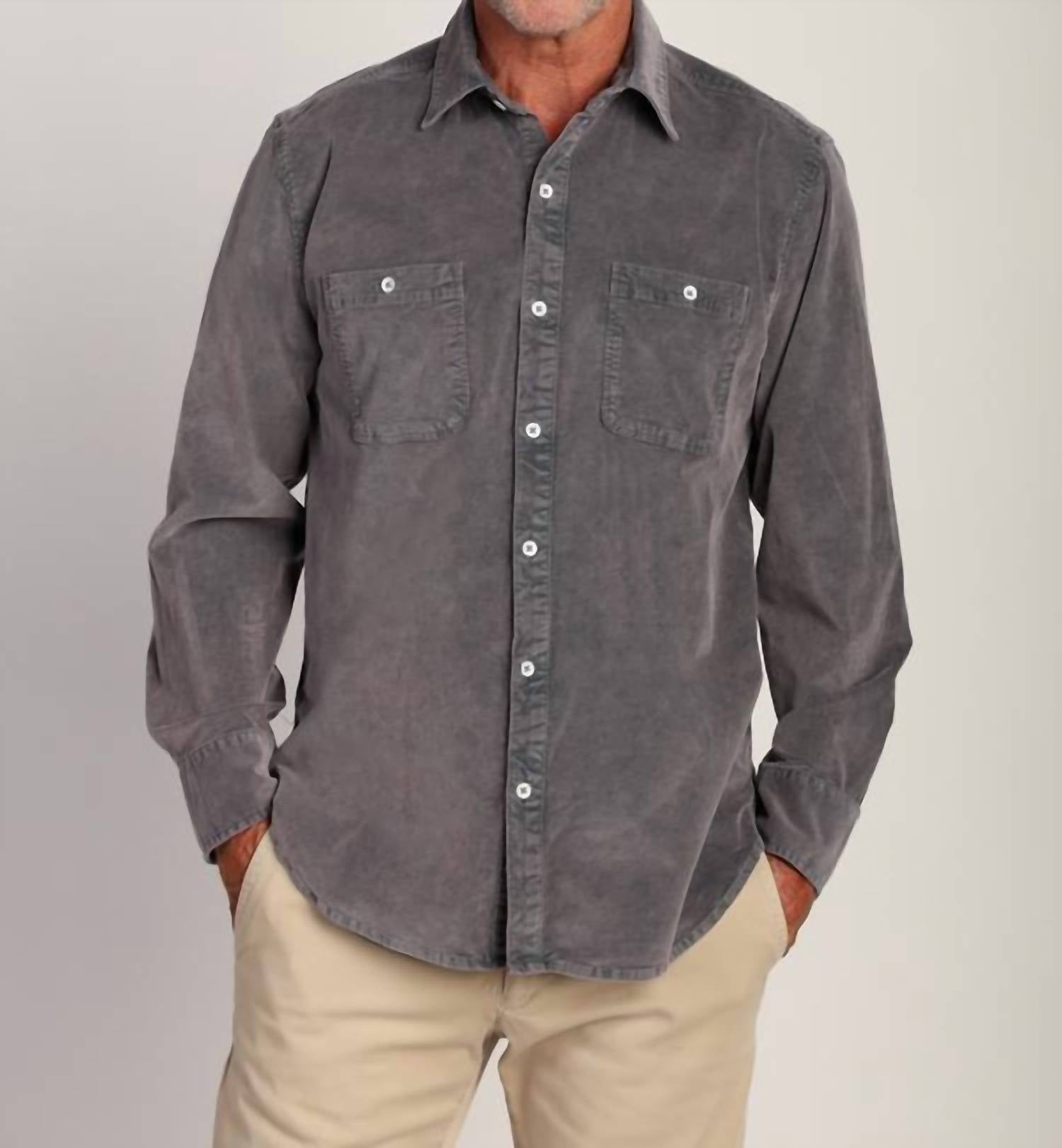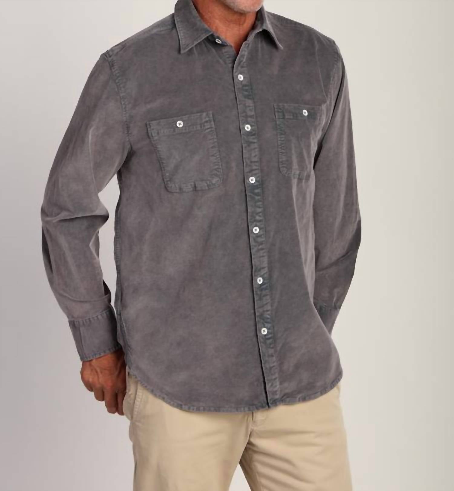 Discover the Cozy Cut Cord Work Shirt by TRUE GRIT, an ideal blend of durability and comfort in Claret. This long sleeve shirt is crafted from a 98% Cotton and 2% Elastane blend for flexibility and comfort, making it perfect for spring occasions. It features a solid minimalist design with two utility pockets and a classic collar, offering a relaxed fit. Closure: Button closure. Care: Machine wash cold with like colors, do not bleach, tumble dry low, and low iron if needed. Model is 6'1" and wearing a size Medium.