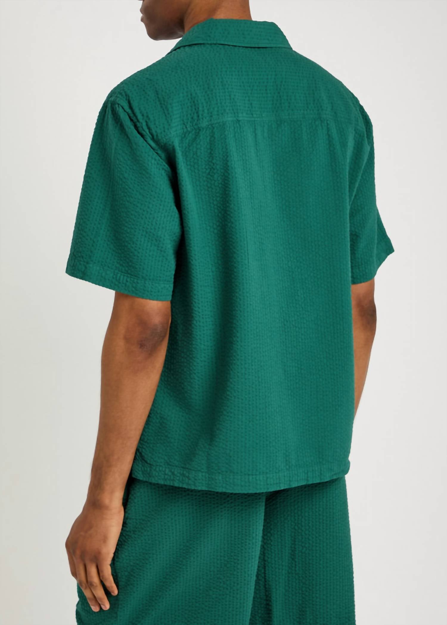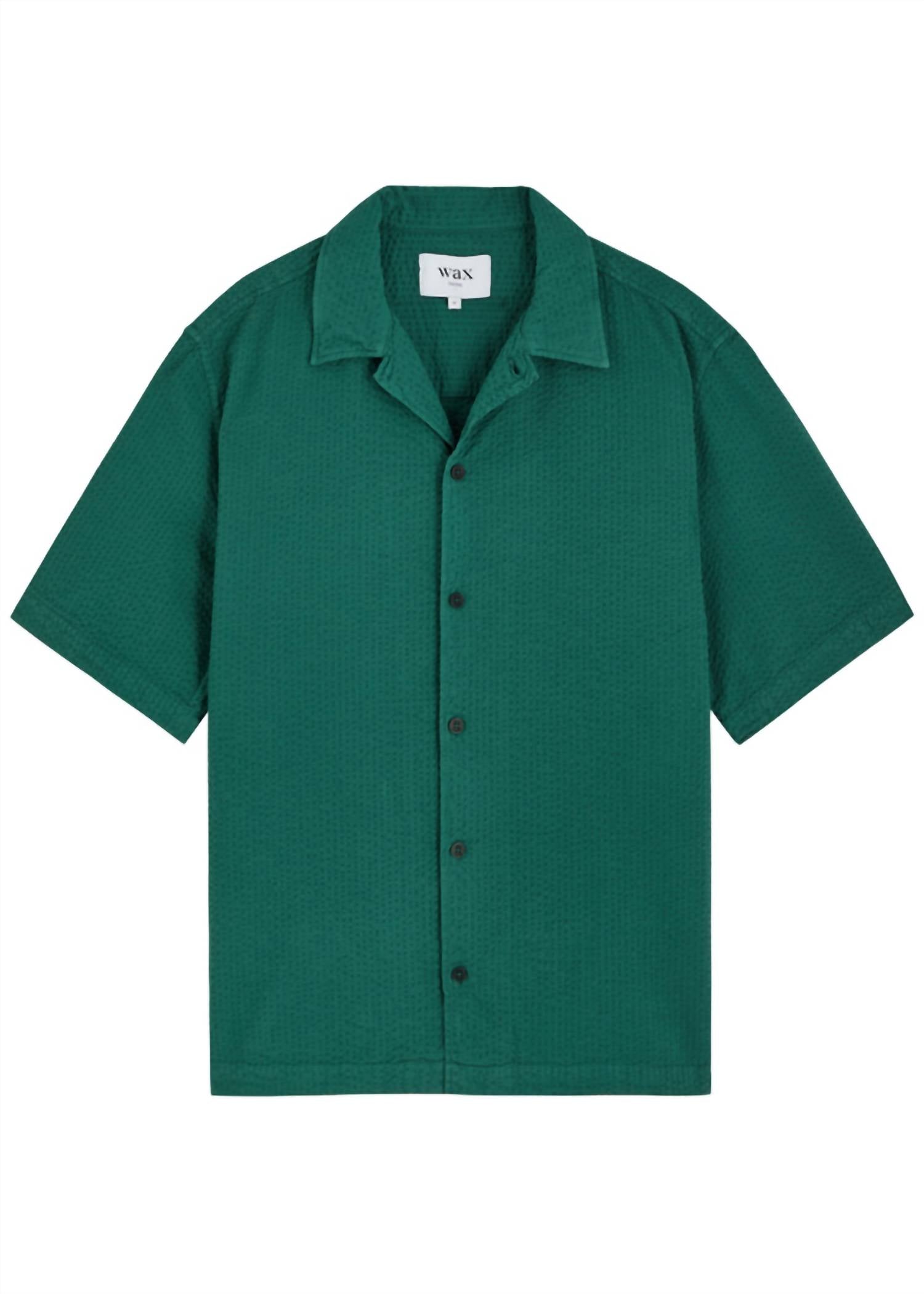 Meet the Keats Seersucker Shirt by Wax London, a versatile piece perfect for summer style. Featuring a short sleeve design, this shirt is crafted from 100% cotton for a comfortable, breathable fit. In a textured finish, the forest green color adds a unique touch to your casual wardrobe. With its button closure and one-piece collar, it's ideal for streetwear fashion. Care is simple with machine wash instructions.