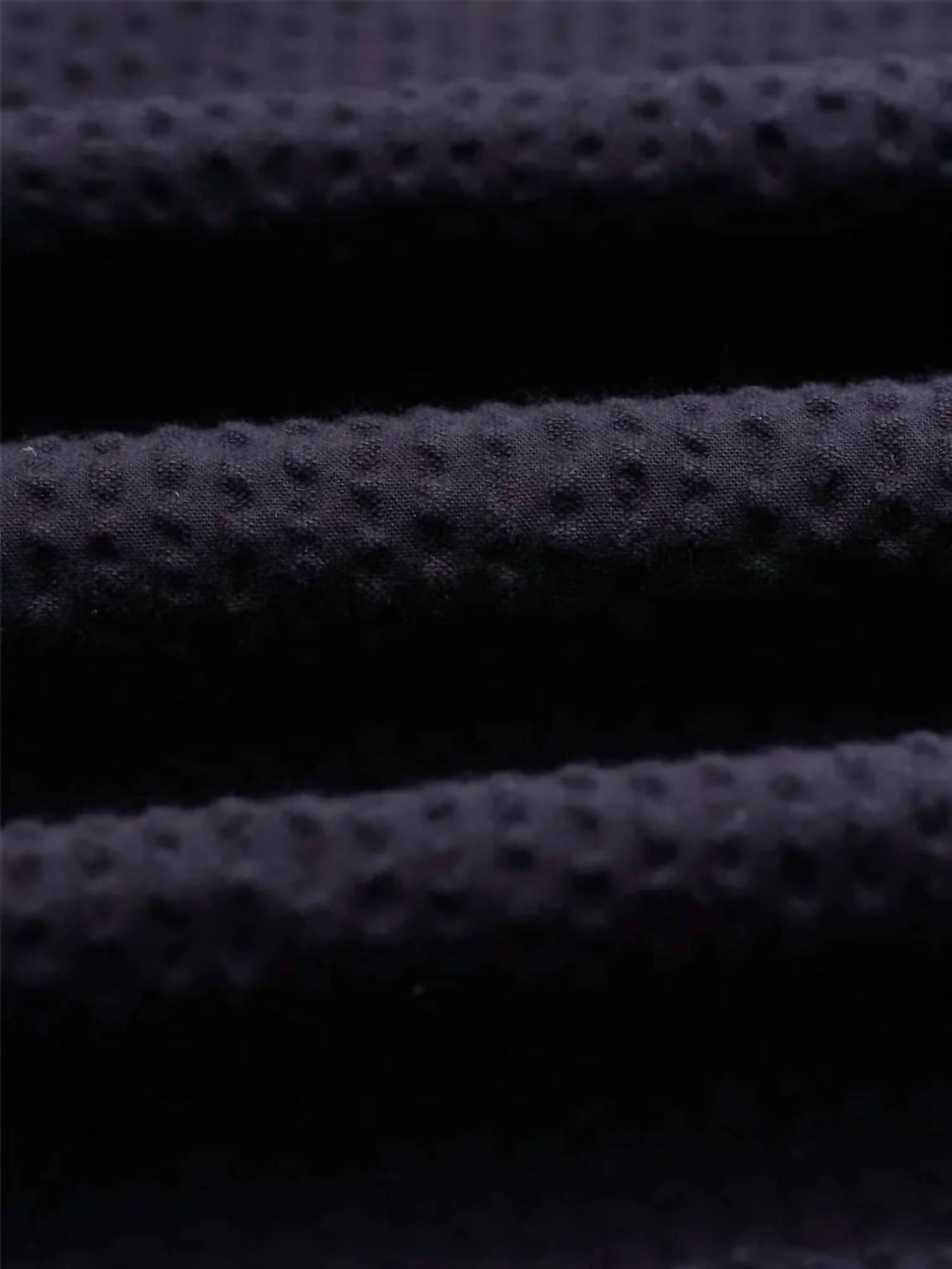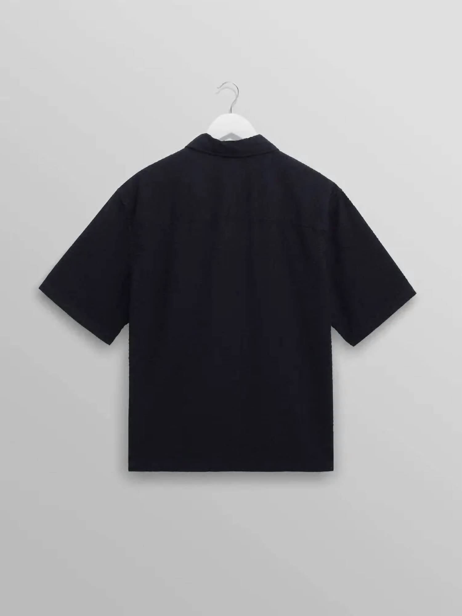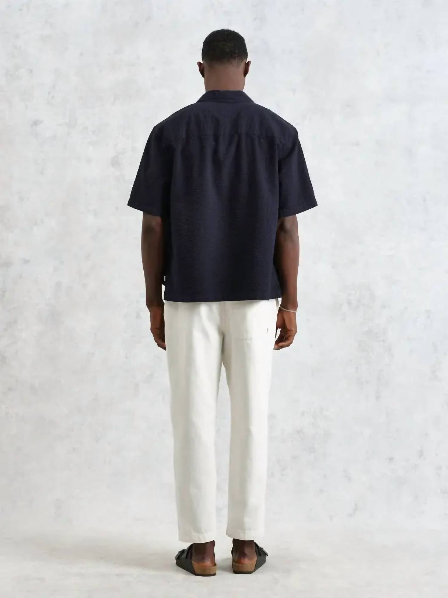 Embrace a classic look with the Keats Seersucker Shirt by Wax London in a refined navy hue. Designed with short sleeves and a one-piece collar, this shirt is made from 100% cotton seersucker, ensuring comfort and breathability. Featuring a button closure, its boxy cut is complemented by hem side splits and a straight hem for a relaxed fit. Originating from Tunisia, it's crafted for easy care with machine wash instructions.