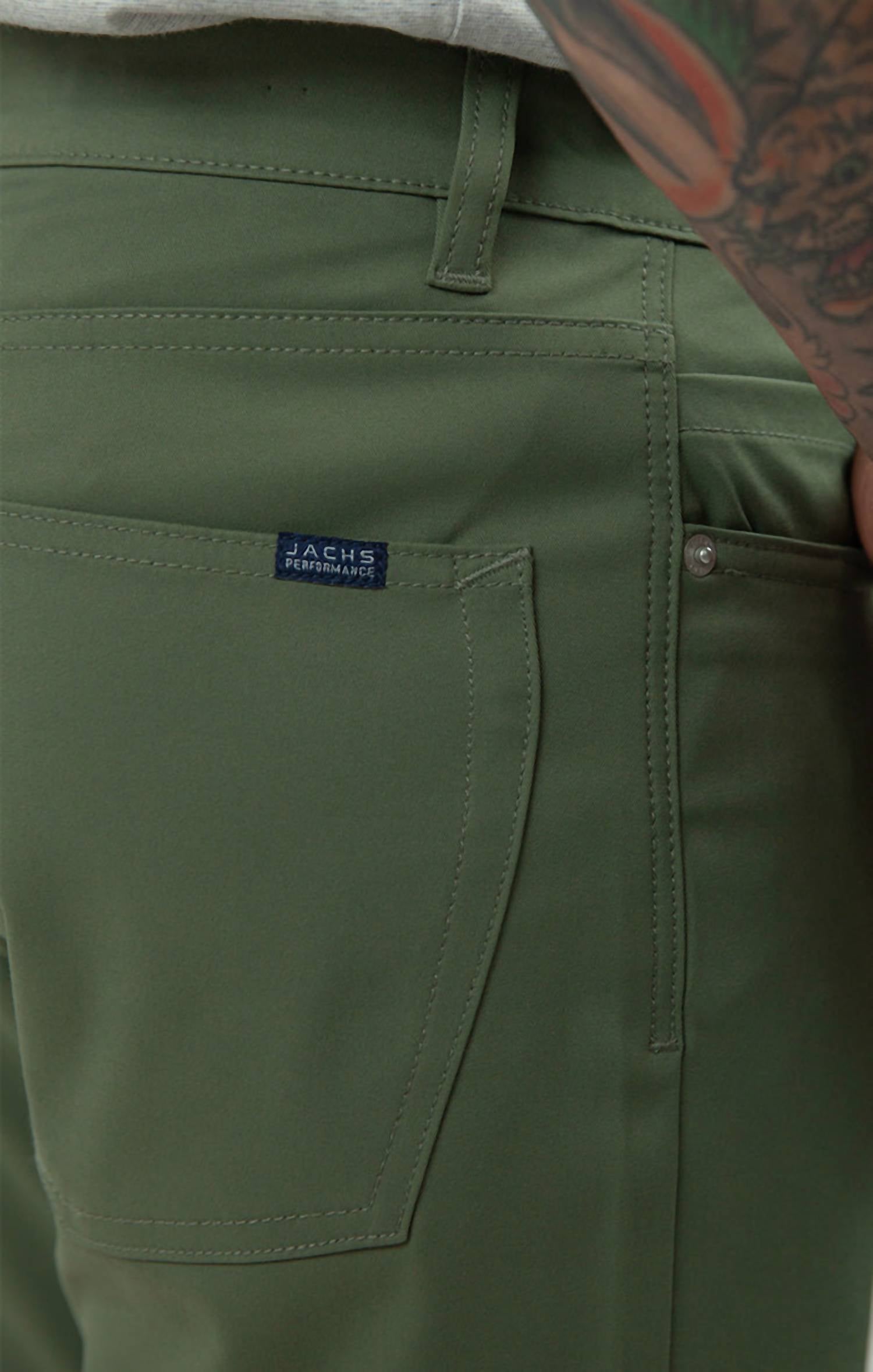 Meet the Poly Spandex Performance Tech Pants by JACHS NEW YORK, expertly crafted for the modern man in sophisticated hue. These feature a 5-pocket design and relaxed fit, complemented by a flexible waistband with silicone grip for added convenience. Made from 96% polyester and 4% spandex, the material ensures ultimate comfort with 4-way ultra stretch and moisture-wicking properties to keep you cool and dry. Imported and designed with a classic straight leg and button closure, these pants are your go-to for minimalist style this summer.