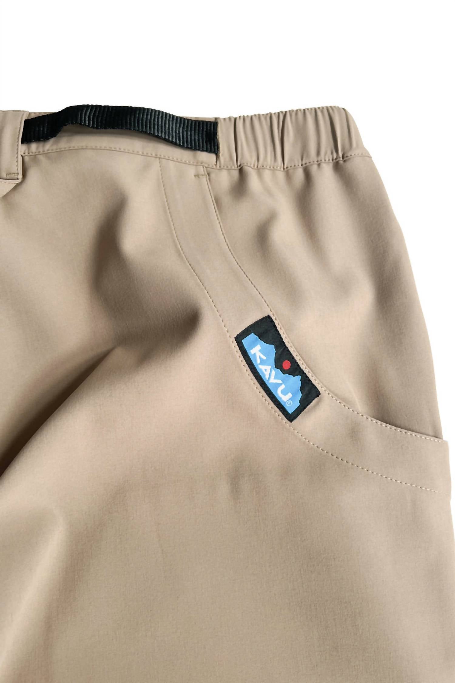 The Chilli Trek Pant by KAVU is perfect for your vacation wardrobe, offering style and comfort in a solid mushroom color. These straight-leg chinos for men feature a mid-rise waist and regular fit, complete with convenient pockets. Designed for streetwear trends this spring, they come with a practical tie closure. Enjoy a versatile and sleek addition to your wardrobe, ideal for any casual outing.