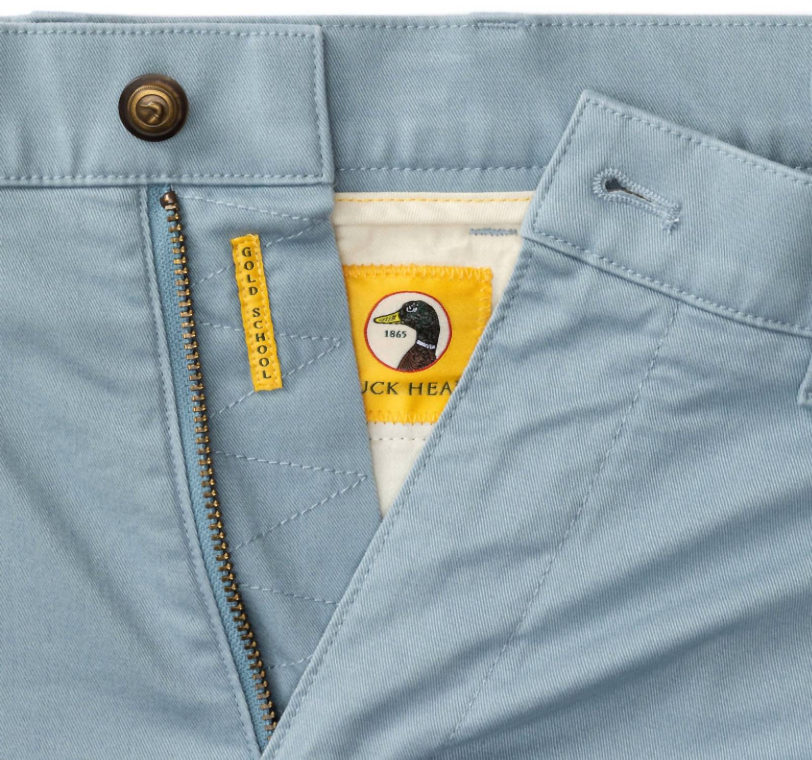 Introducing the Classic Fit Gold School Chino Pants by Duck Head, crafted in a timeless River Blue for the modern man. These chinos feature a classic fit with a straight leg design and are made from a 97% cotton, 3% stretch blend, ensuring comfort and durability. Equipped with practical details like drill cloth pockets, a coin pocket, and a robust YKK metal button closure, they maintain the brand's heritage of quality. Care is made easy with these pants; simply machine wash cold and tumble dry low to keep them looking their best.