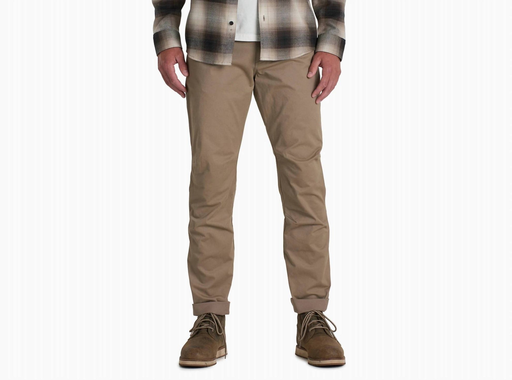 Experience the KUHL Men's Lite Klassik Badlands in Khaki, a versatile pair of chinos featuring a mid-rise and regular fit. These pants offer a soft and comfortable feel with a rugged touch, made from a luxurious micro twill cotton blend with added stretch for ease of movement. They ensure UPF 50+ maximum UV protection, articulated knees, and a FreeRydeâ„¢ comfort waistband, complemented by a zip closure. Originating from imported materials, these chinos are easy to maintain with machine wash cold and tumble dry low instructions.