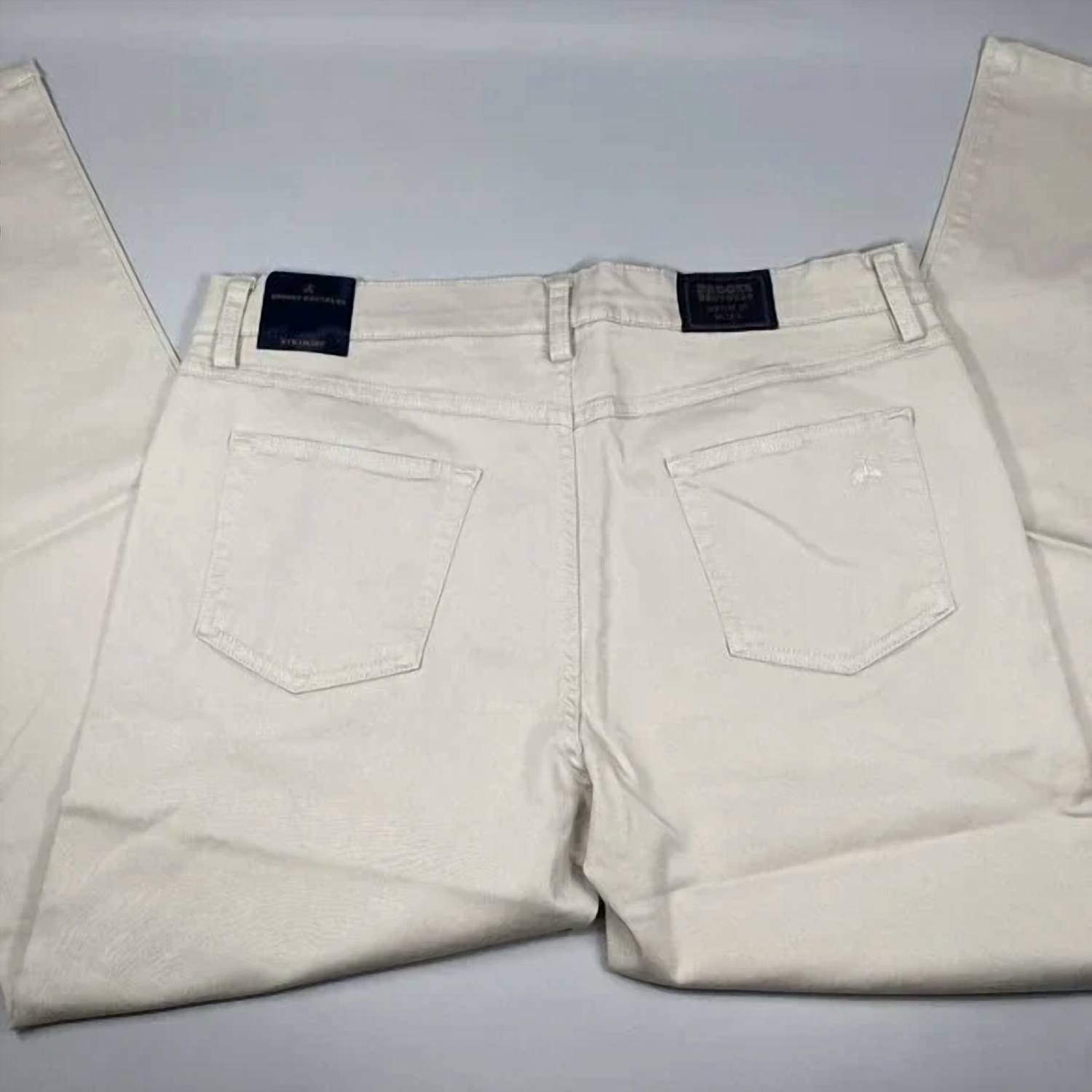 Discover the Brooks Brothers Men's 5-pocket Straight Leg Pants, an embodiment of classic American style tailored for today's versatile wardrobe. These solid ecru-colored chinos are crafted from a cotton blend, offering a comfortable and smart fit with a mid-rise waist and a traditional straight leg. The pants are designed with a practical five-pocket style and feature a secure zip closure. Ideal for workwear or travel, they are easy to maintain with a machine wash care routine.