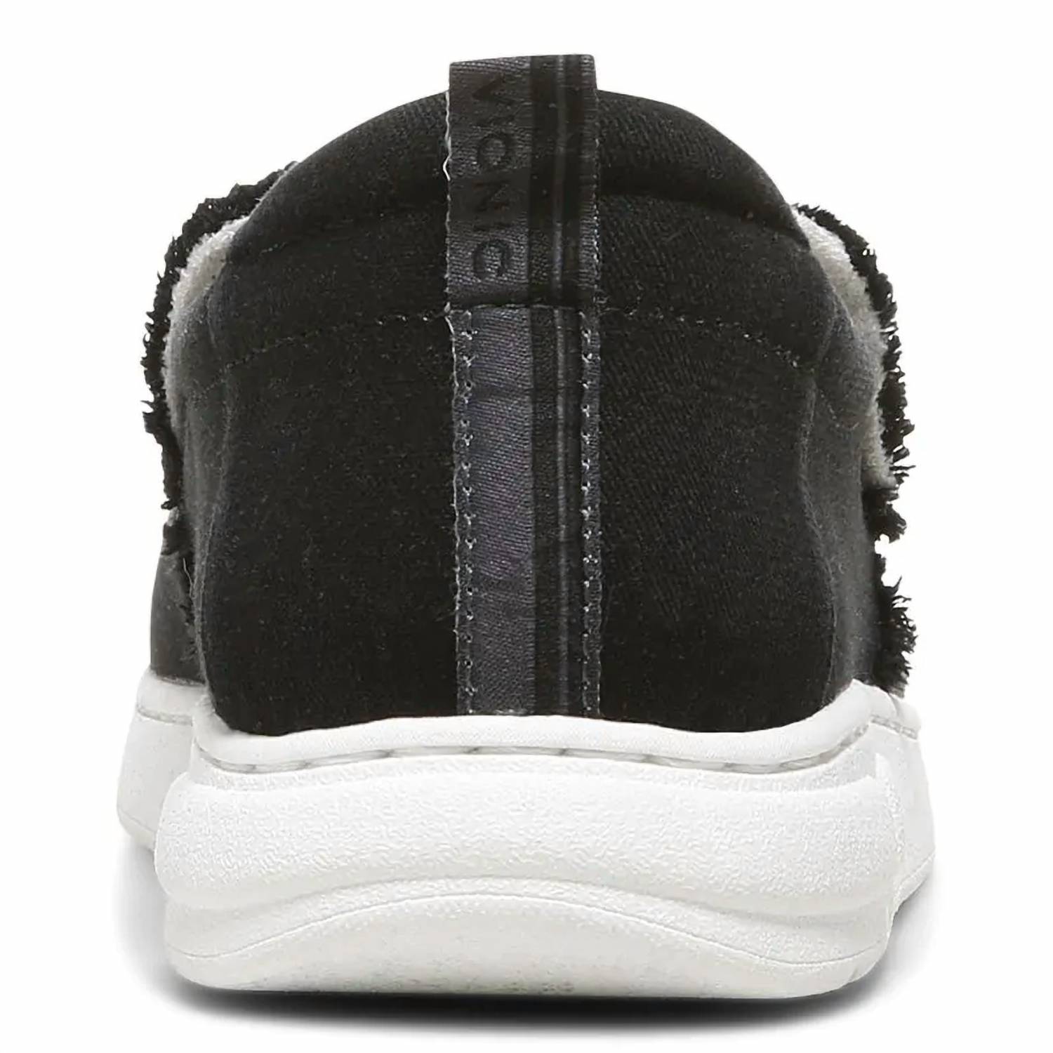 Discover the MEN'S SEAVIEW CANVAS SLIP-ON SHOES by VIONIC, perfect for effortlessly casual and summer outings. The eco-conscious design features an eco-certified cotton canvas upper, offering both style and sustainability in a leather-free option. These shoes boast a lightweight TPR outsole for superior comfort along with a removable twill-covered EVA footbed for enhanced arch support. Easy to maintain, simply machine wash in cold water after removing the orthotic footbed and air dry to keep them looking fresh. Toe Shape: Round Toe. Shoe Width: Medium.