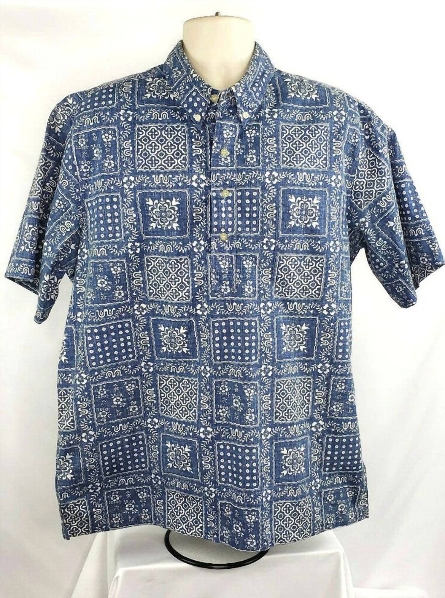 Celebrate in style with the Men's 50th Anniversary Shirt by Reyn Spooner, a standout piece in a blue white floral pattern. This casual button-down shirt features short sleeves and a classic collar, perfect for any occasion. Closure: Button closure. Care: Machine wash.