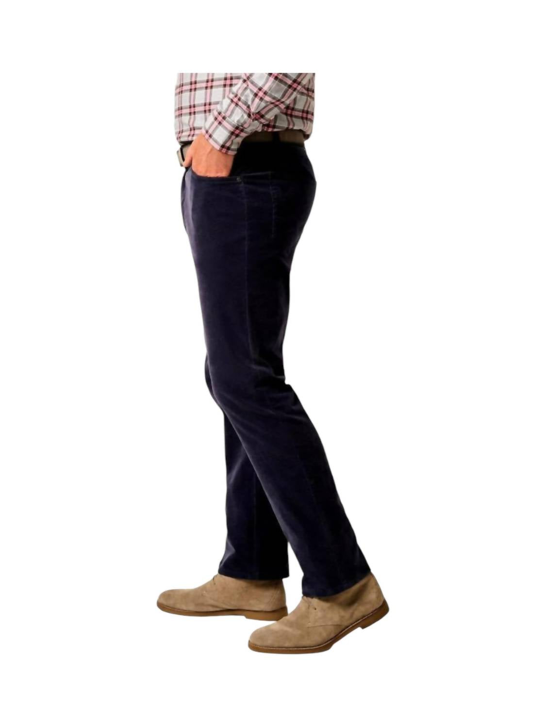 Discover the Harkers Pants by JOHNNIE-O, crafted from a blend of 98% Cotton and 2% Spandex for comfortable wear. These deep navy corduroy pants feature a zip closure with signature buttons and rivets, adding a touch of style to their classic straight leg design. Inseam: 32". Care: Machine wash cold on a gentle cycle with like colors, tumble dry low.