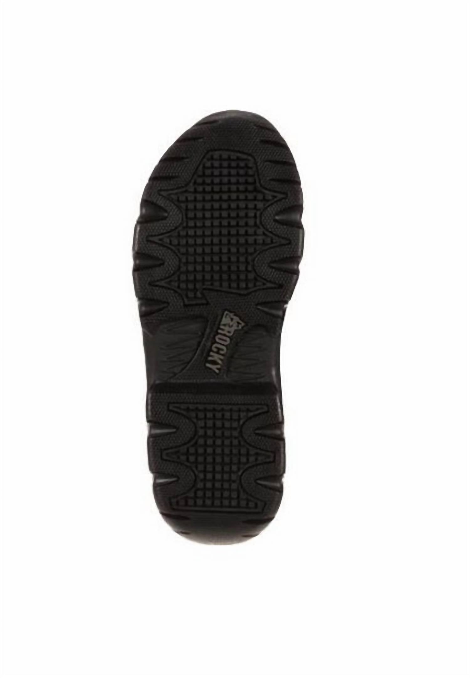 Moisture-wicking lining. Guaranteed Rocky® Waterproof construction. Light and flexible cement construction. Padded collar. Terra Suspension Footbed Provides Support and Cushioning. Full-grain leather upper. Nylon shank. Oil and slip-resistant rubber/EVA outsole. 5 Inches in height