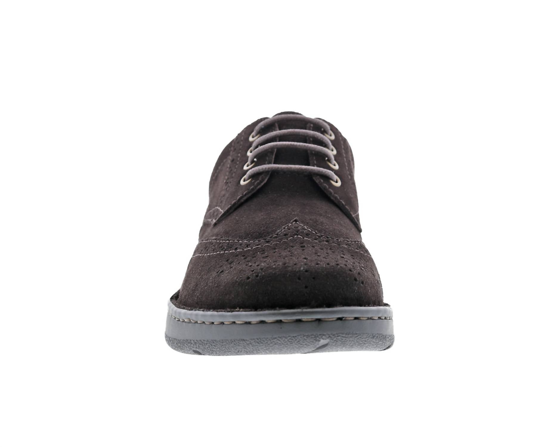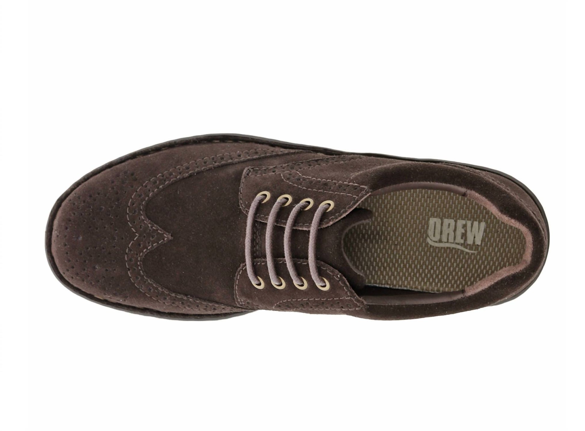 Discover the Men's Delaware Suede Shoes by Drew Shoes, a classic wingtip oxford crafted from finest brown suede. They boast a lightweight polyurethane outsole with a rocker bottom, offering excellent stability and comfort. Featuring the Plus Fitting System® with two removable footbeds for added and double depth, these shoes also accommodate prescribed orthotics. With Drilex® and leather linings, a tempered steel shank, and a firm heel counter, they provide the perfect fit and support for every step.1.25 inches heel height, with a round toe and wide fit for ultimate comfort.