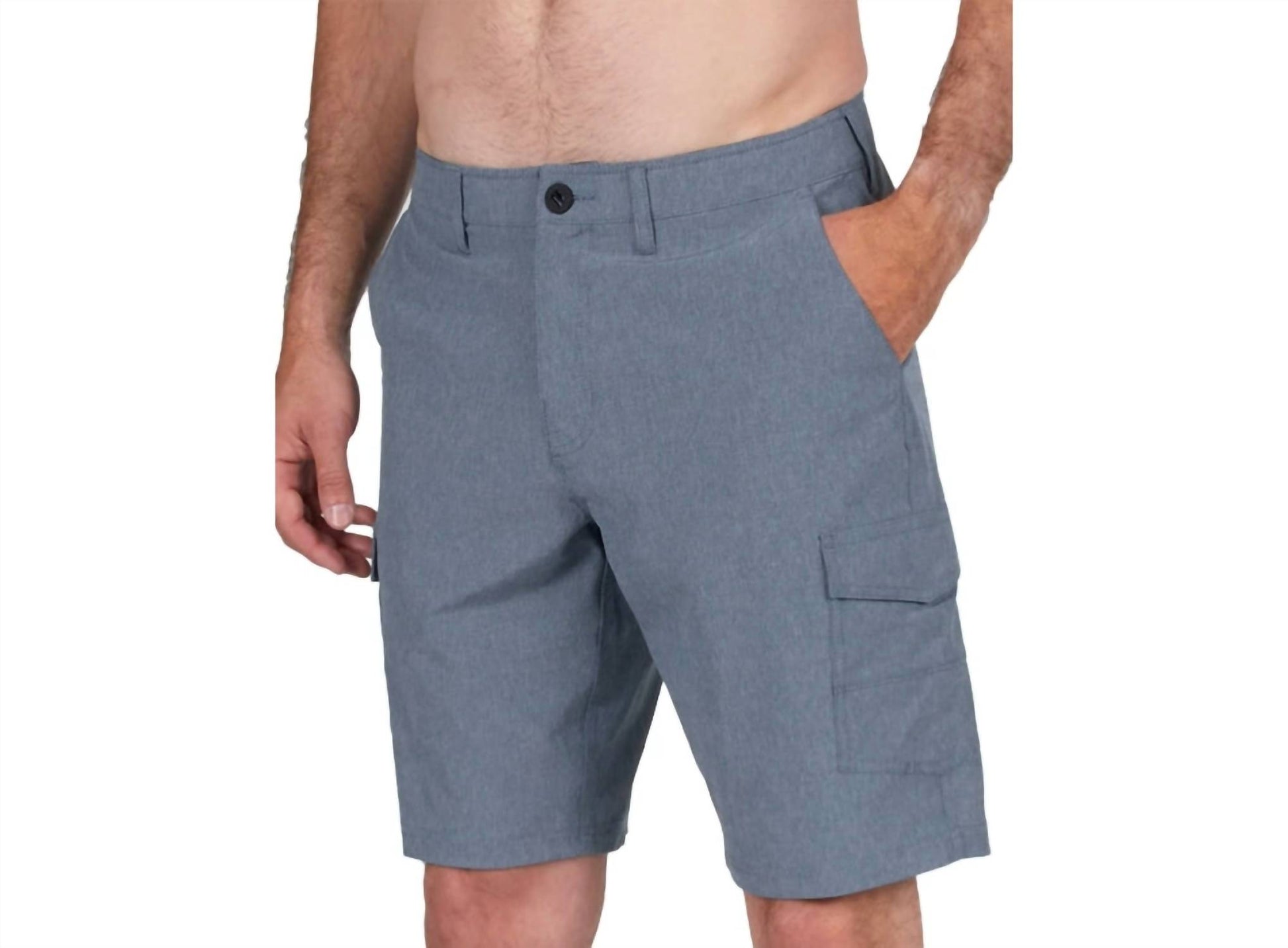 The Drifter 2 Cargo Short by Salty Crew is a versatile hybrid piece crafted from a comfortable cotton blend in a solid navy color. Designed for men, this short features practical pockets and a button closure for secure functionality. Care is effortless with machine wash and tumble dry instructions, making it ideal for everyday wear. A perfect addition for those who prioritize style and convenience.