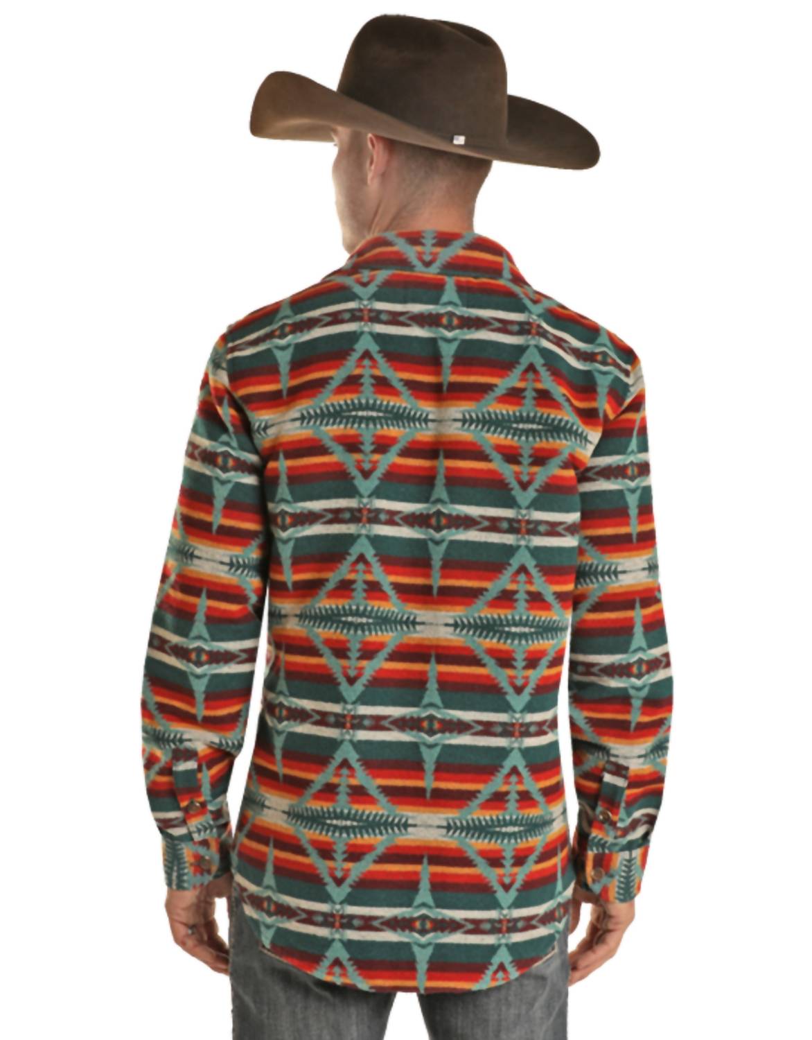 The Aztec Wool Blend Shirt Jacket by Powder River is an intriguing addition to any wardrobe, blending style and function effortlessly. Crafted with long sleeves and a composition of 90% polyester and 10% wool, this lightweight shirt jacket features a tailored fit and snap closure. Its traditional collar, two chest pockets with button flap closure, and contrasting cotton corduroy lining on the cuffs add unique detailing to this patterned piece. Made with practicality in mind, it is machine washable, making it both stylish and easy to care for.