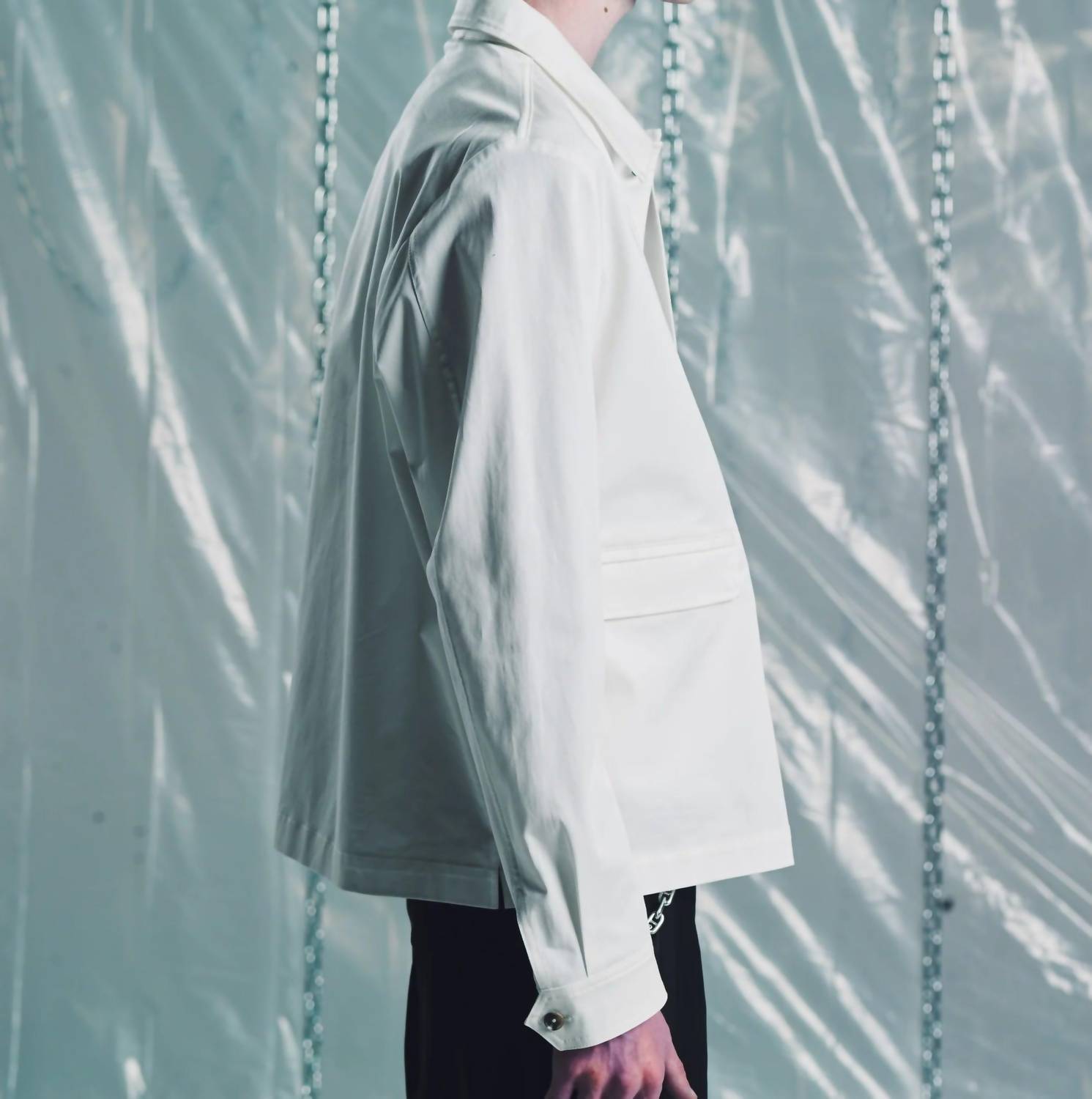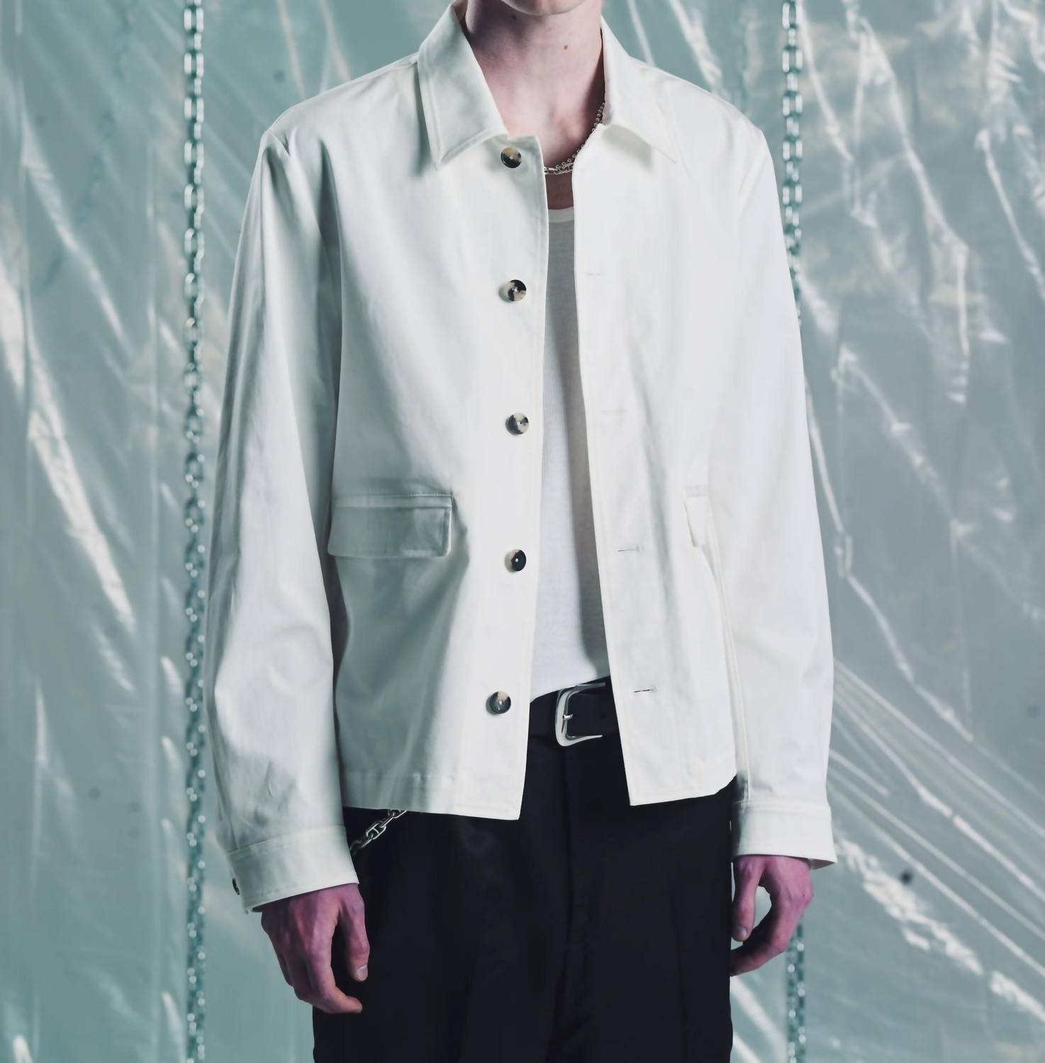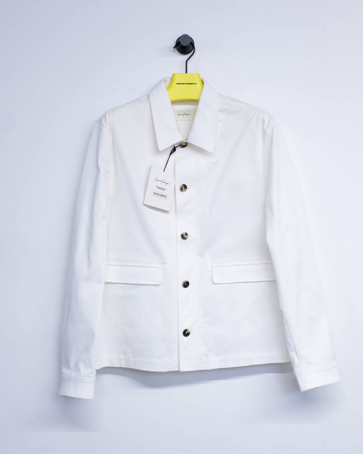 Introducing the Cotton Twill Bull Dog Shirt Jacket by SECOND/LAYER, a stylish choice for men this spring. With long sleeves and a solid white design, this lightweight jacket is crafted entirely from cotton, offering both comfort and breathability. It features a button closure and a classic collar, making it a versatile addition to any wardrobe. Pockets add a touch of practicality, perfectly blending form and function for everyday wear.