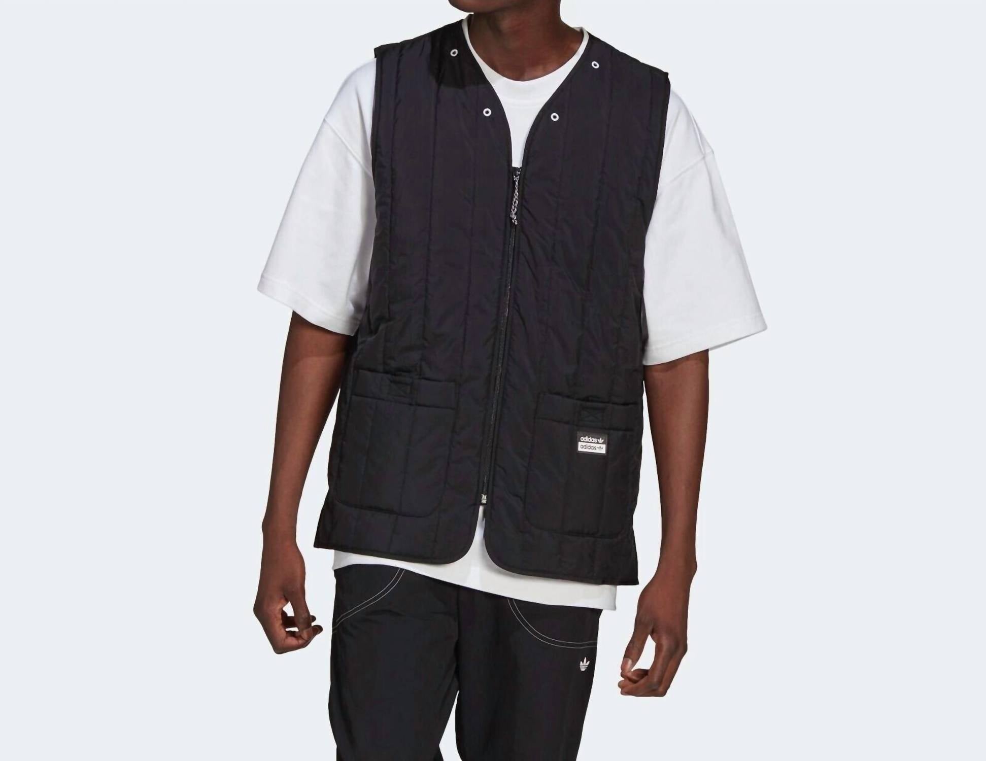 This vest is tailored for men in a sleek hue. This solid colored vest is sleeveless with a V-neckline, providing a contemporary look with practical functionality featuring pockets. Effortlessly maintain its condition by spot or wipe cleaning, and lay flat to dry. Perfect for versatile styling, this utility vest combines aesthetic appeal with convenience.