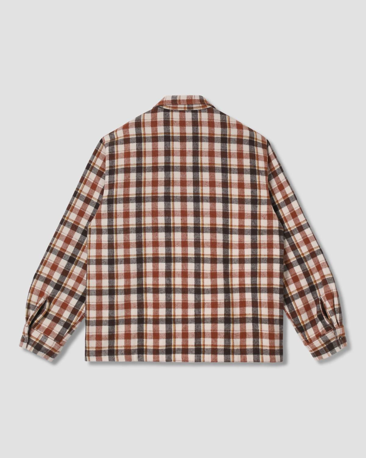 The Men's Zip Shirt by Stan Ray exudes a modern aesthetic with its long sleeves and distinct zip closure. Crafted from 100% brushed cotton in a warm tan plaid, this lightweight shirt-jacket is perfect for transitional fall weather. It features in-set hand pockets and a patch pocket with an OG label at the chest for added utility. For easy maintenance, machine wash and line dry.