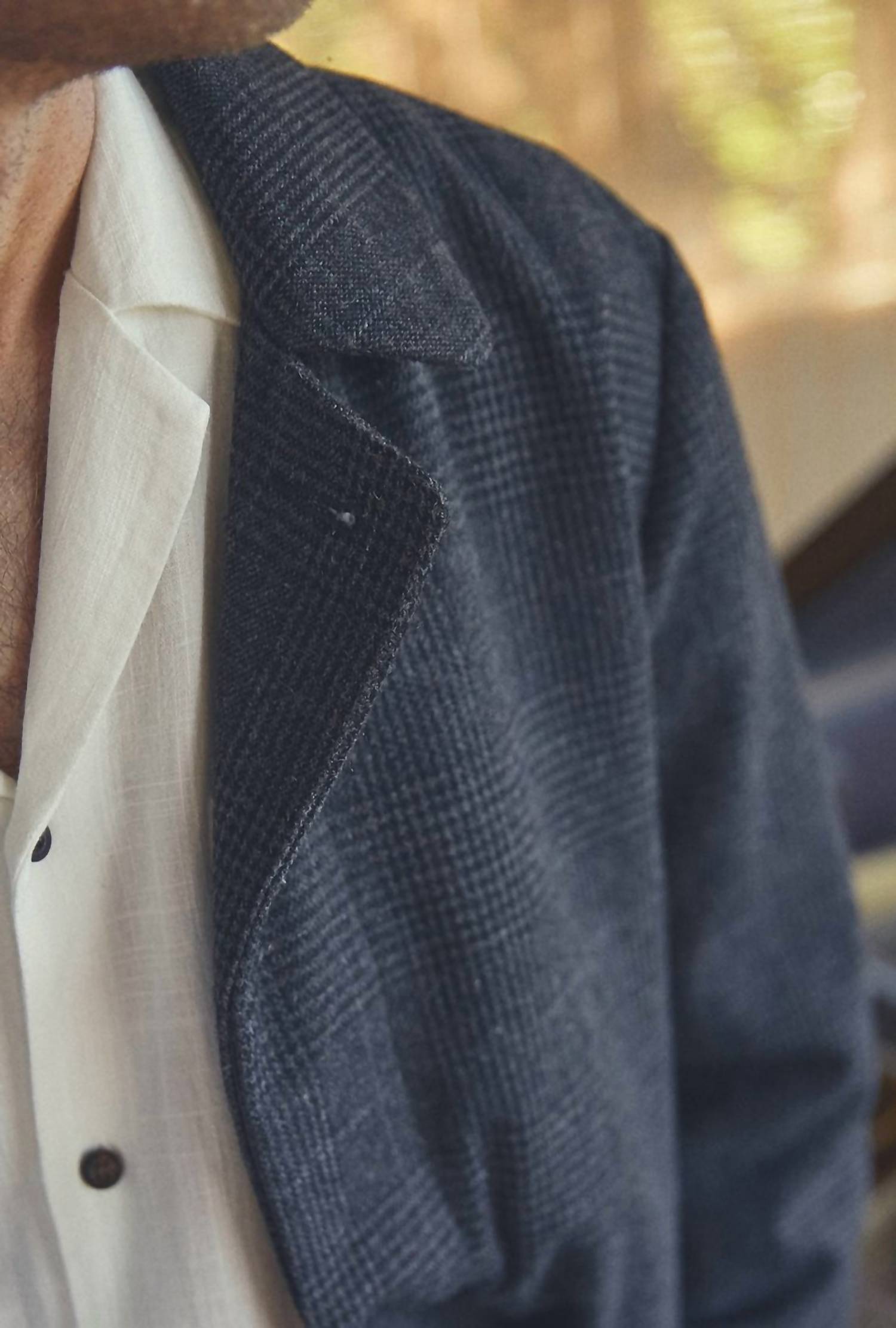 Elevate your outerwear collection with the Men's Brooklyn Plaid Trench Jacket by Banks Journal, fashioned in a classic Dirty Black plaid. This long sleeve trench features a unique combination of 50% wool and 50% polyester for the outer layer, with a cozy 100% cotton flannel lining for added warmth. The concealed button front closure and slanted welt pockets enhance its functional elegance, perfect for fall and a versatile back-to-school or Thanksgiving occasion. Proudly imported for a touch of preppy sophistication, this piece speaks to timeless style with a modern twist.