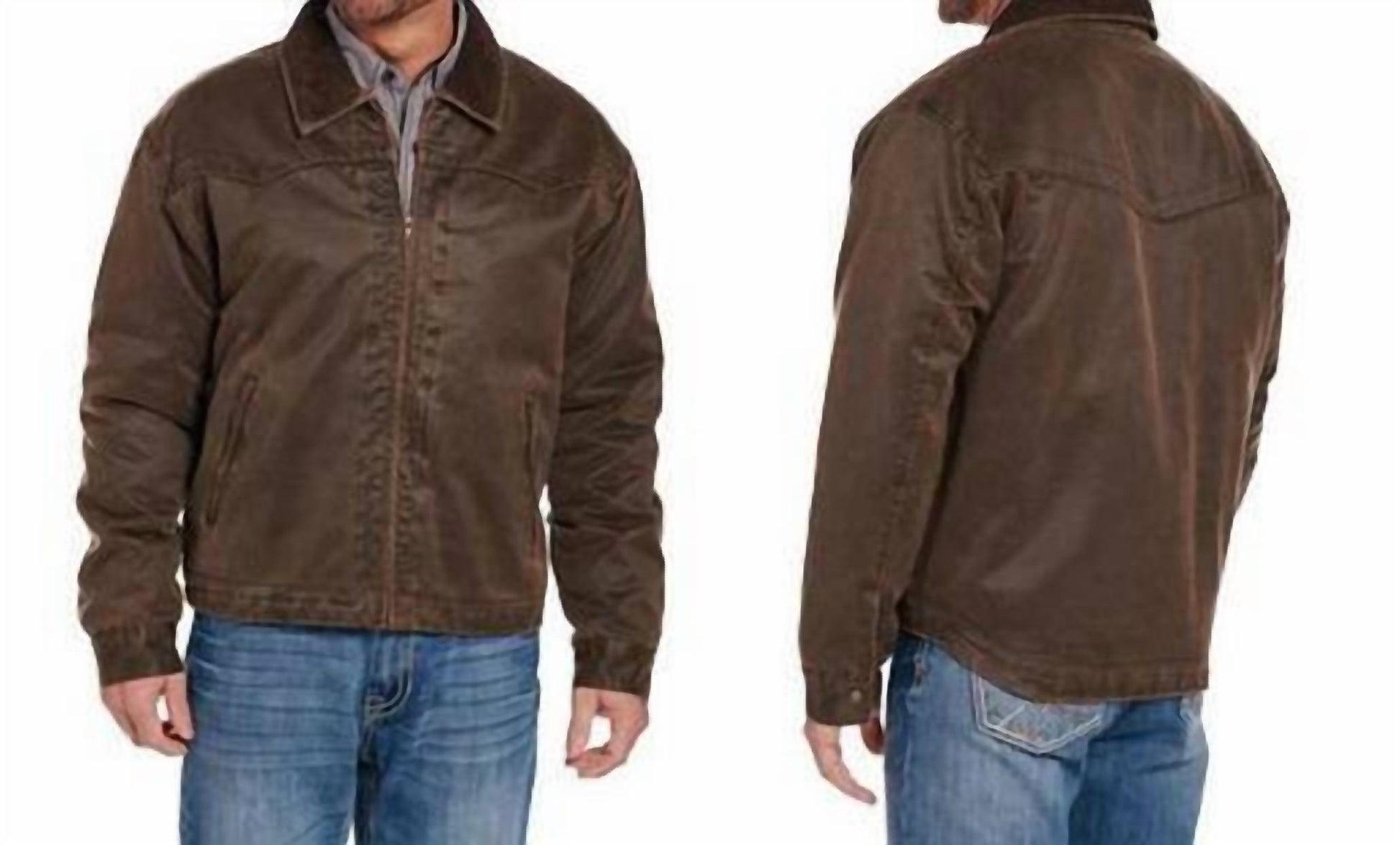 Introducing the Men's Conceal Carry Jacket by Cripple Creek in Antique Brown, designed for a Western flair. This solid vest features long sleeves and is crafted from a durable cotton blend material. It offers convenience with a zip closure and comes with ample pockets for your essentials. Ideal for the winter season, this piece combines style with practicality.