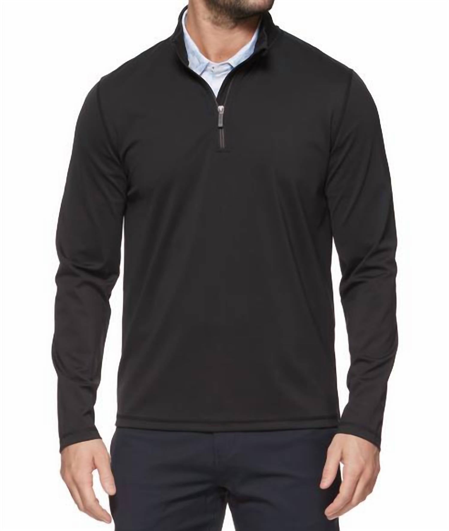 Introducing the Journey Performance 1/4 Zip Jacket by Flags & Anthem, the ultimate blend of style and function in solid black. Designed for men, this jacket features long sleeves and a convenient zip closure. Crafted from 54% nylon and 46% spandex, it offers a comfortable fit with excellent stretch and durability. With its collar neckline, this performance jacket is perfect for any athletic endeavor or casual outing.