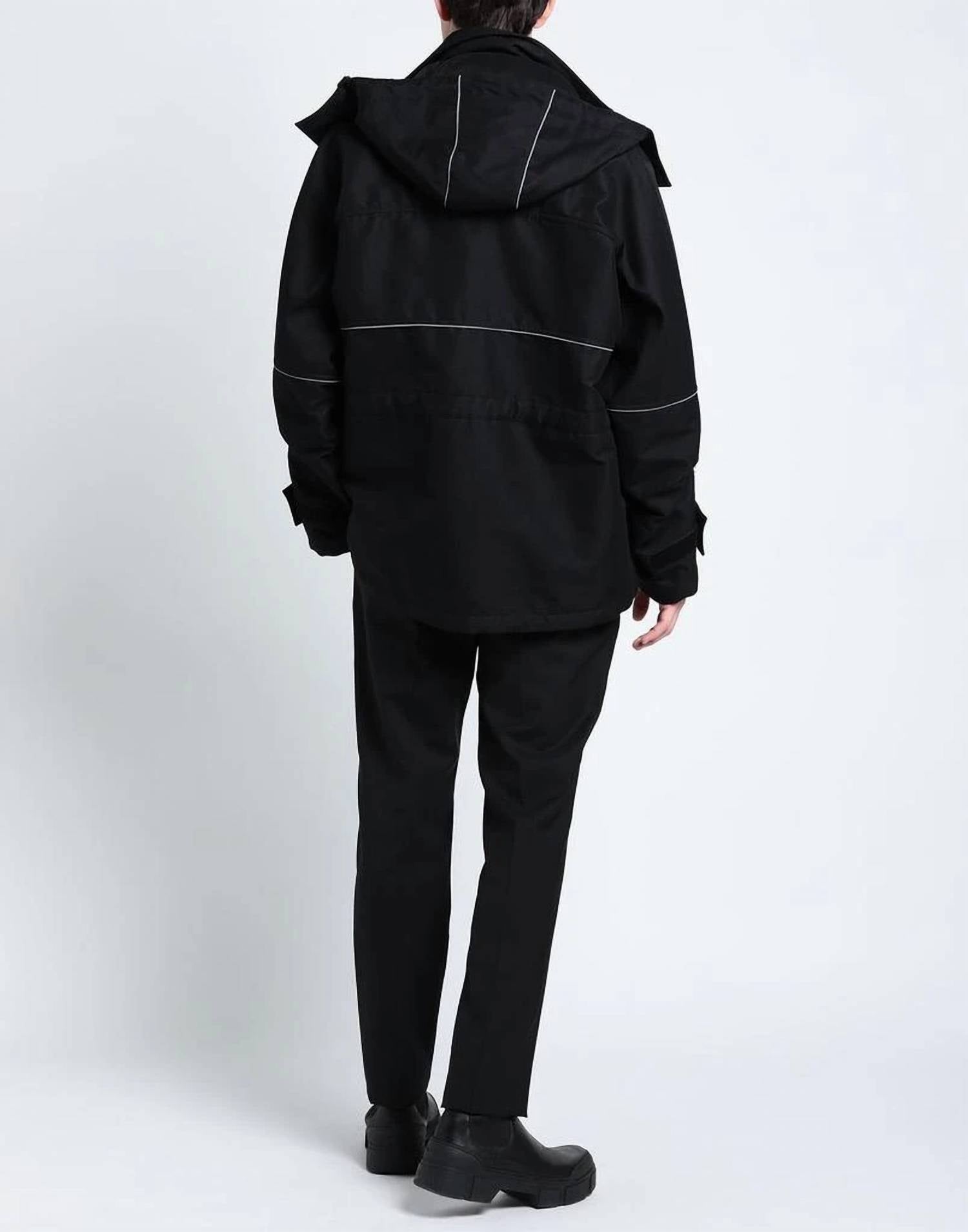 Elevate your winter wardrobe with the Valentino Cotton Blend Print Jacket, crafted for the modern man. This windbreaker flaunts long sleeves, a detachable hood, and stylish contrast stitching for a touch of flair. It features a snap and zip closure along with functional front flap and side pockets. Made in Italy from a 51% Polyamide and 49% Cotton blend, its lining ensures comfort with 100% Polyester. Machine wash. Model is 1.86 m wearing size 46.
